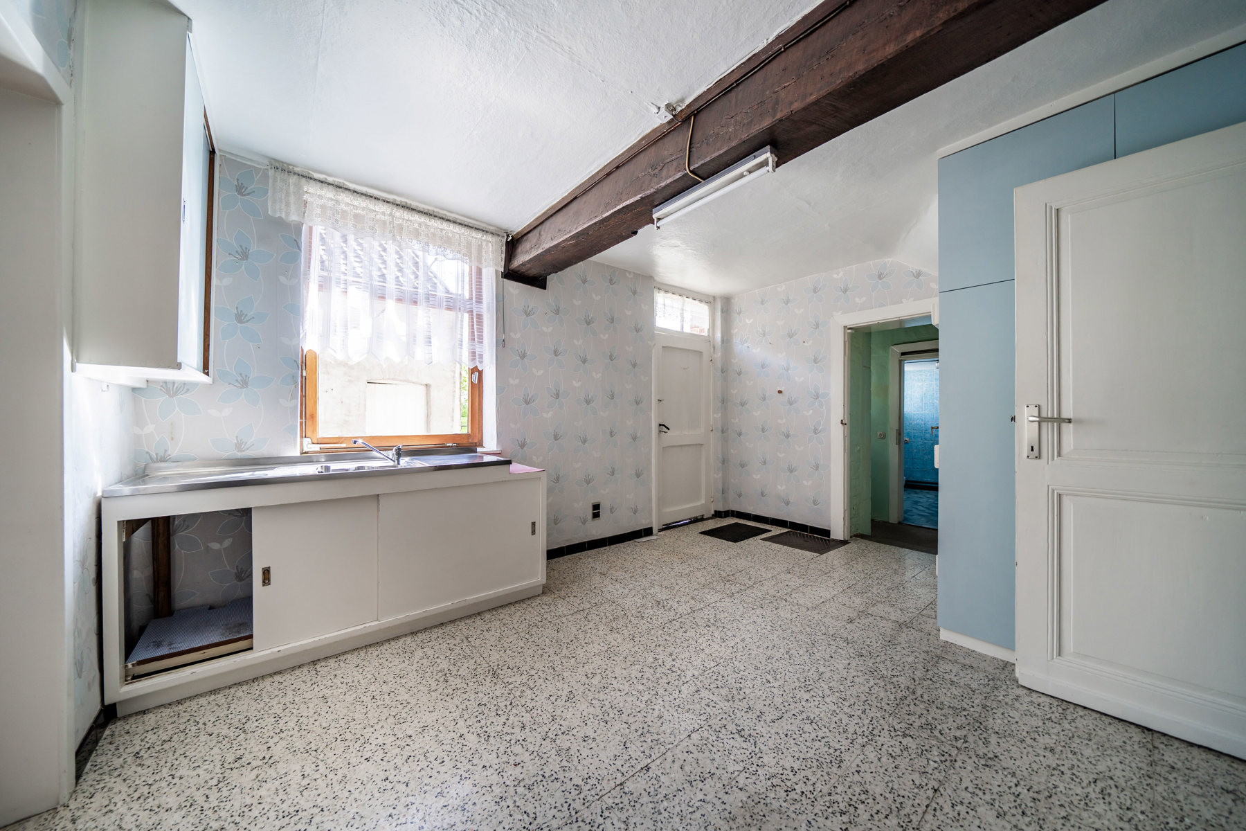 Située dans un quartier calme de Welkenraedt, superbe ferme à rénover 3 chambres (poss. chambres supp.) avec garage, cour et jardin.