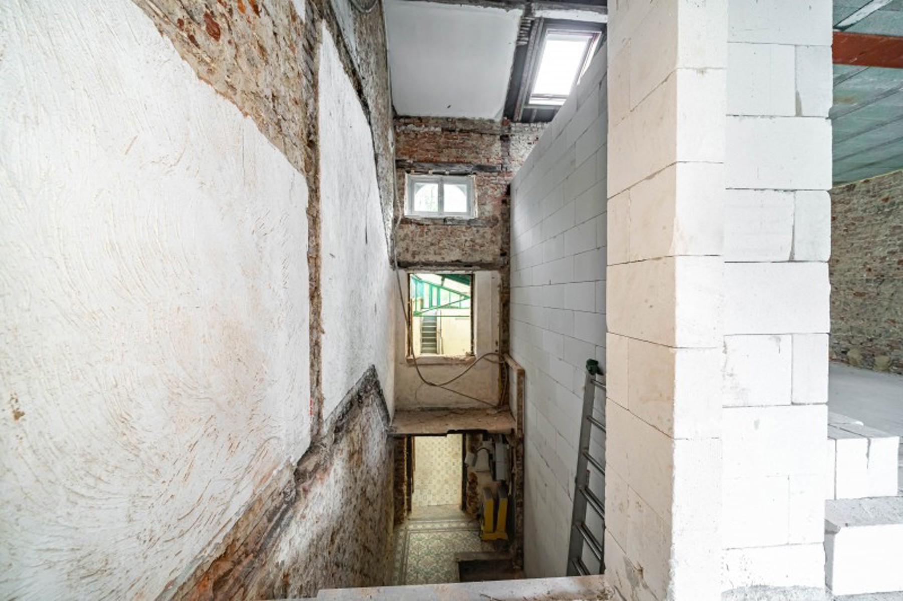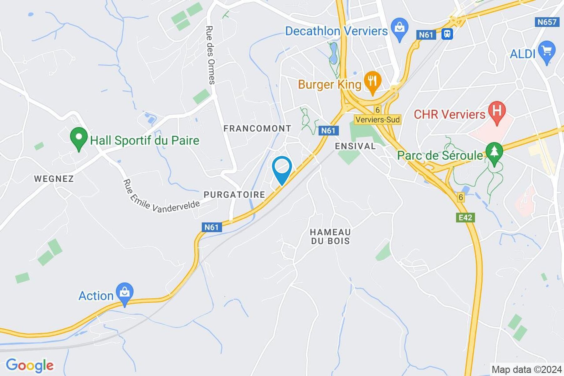 Située sur l’axe principal reliant Verviers à Pepinster et proche des accès routiers, grande maison (Poss. 5 chambres) entièrement à rénover avec jardin et caves.