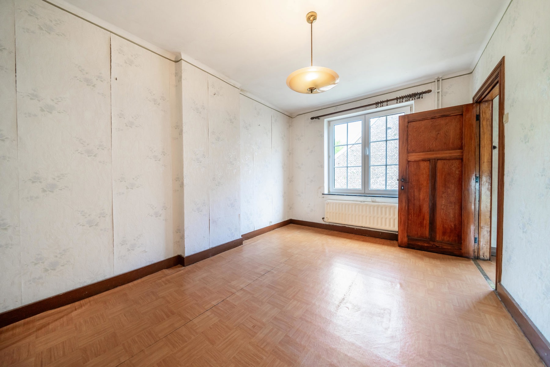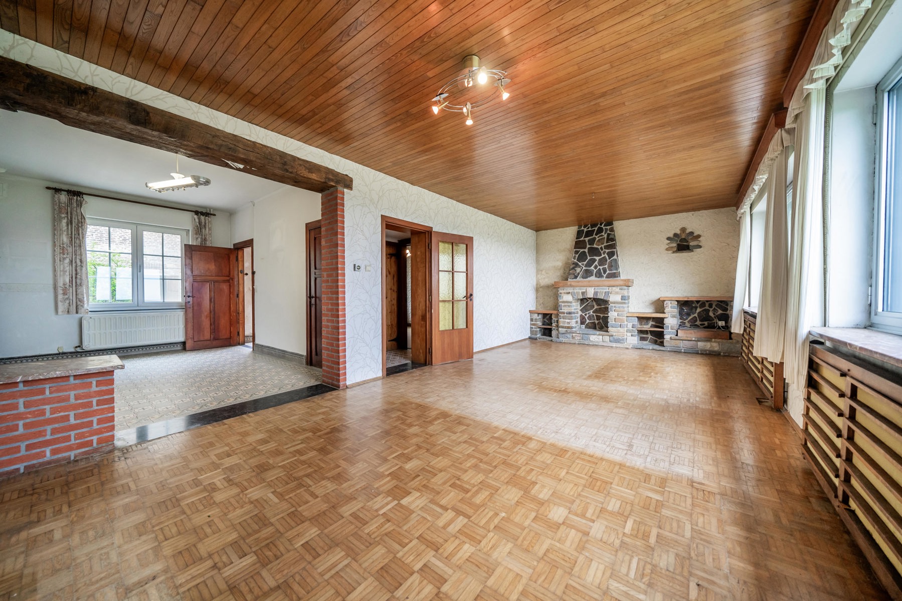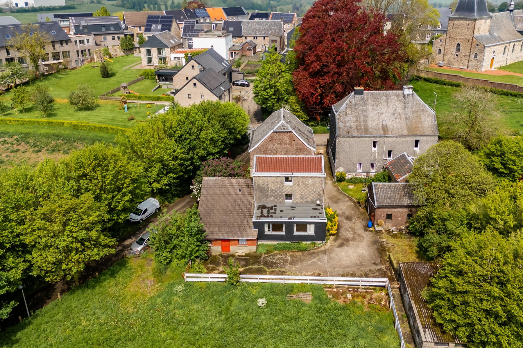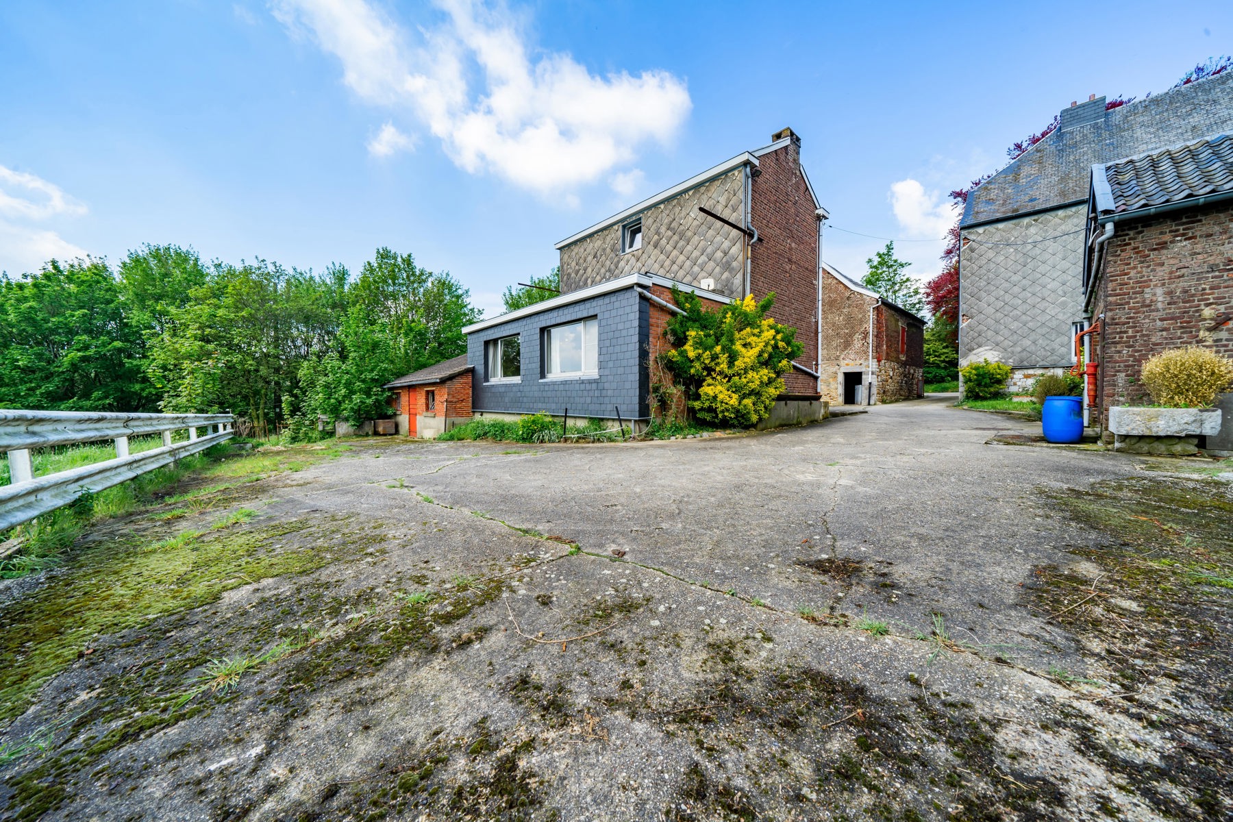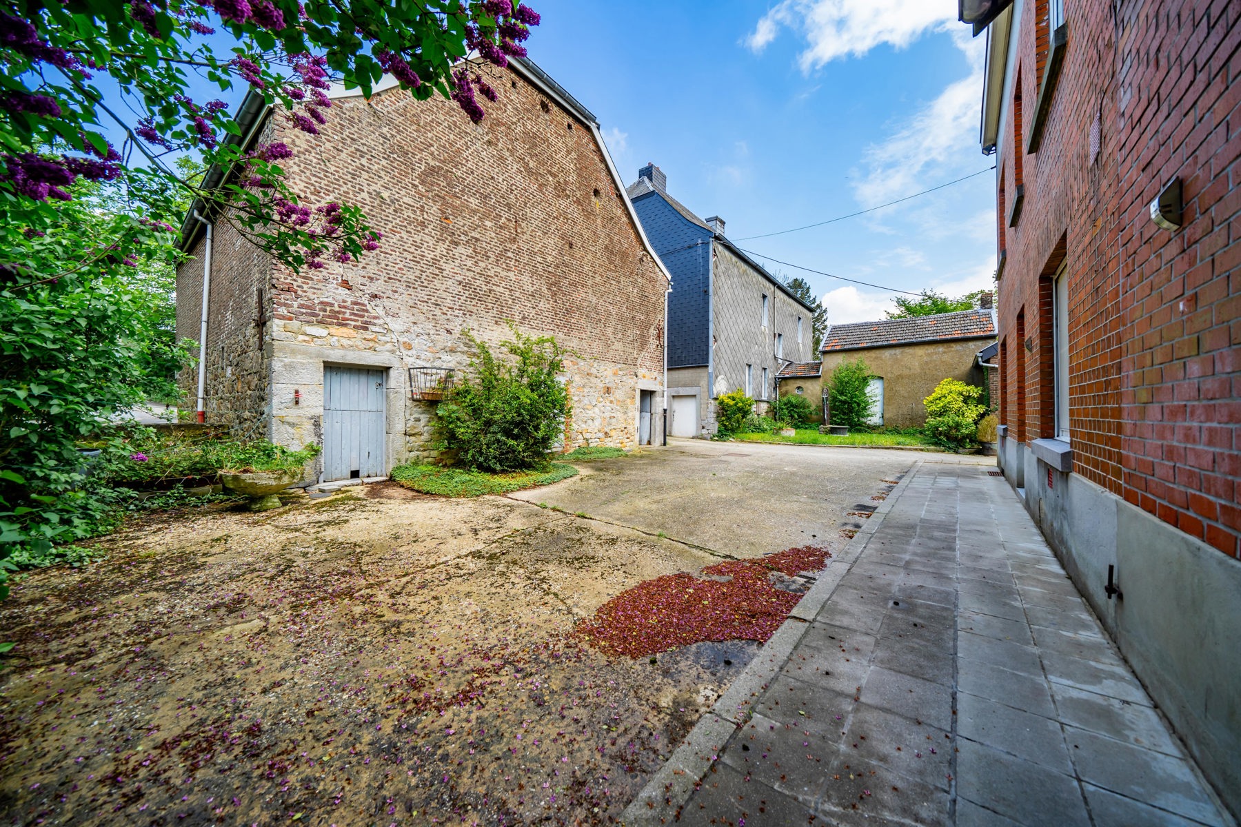 En retrait d'une rue calme en plein centre d'Henri-Chapelle, fermette 5 chambres avec grange, garage, cour et jardin.