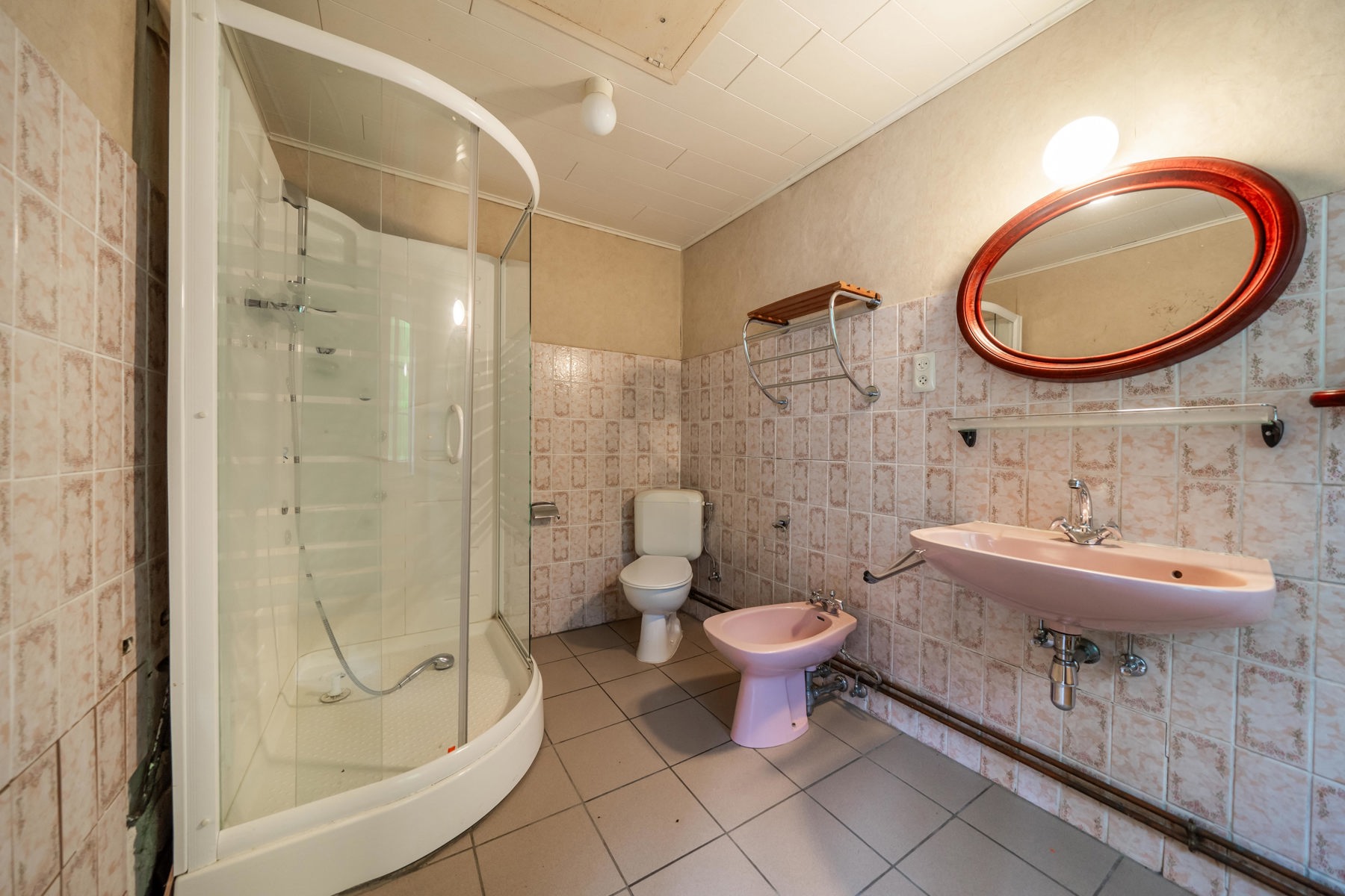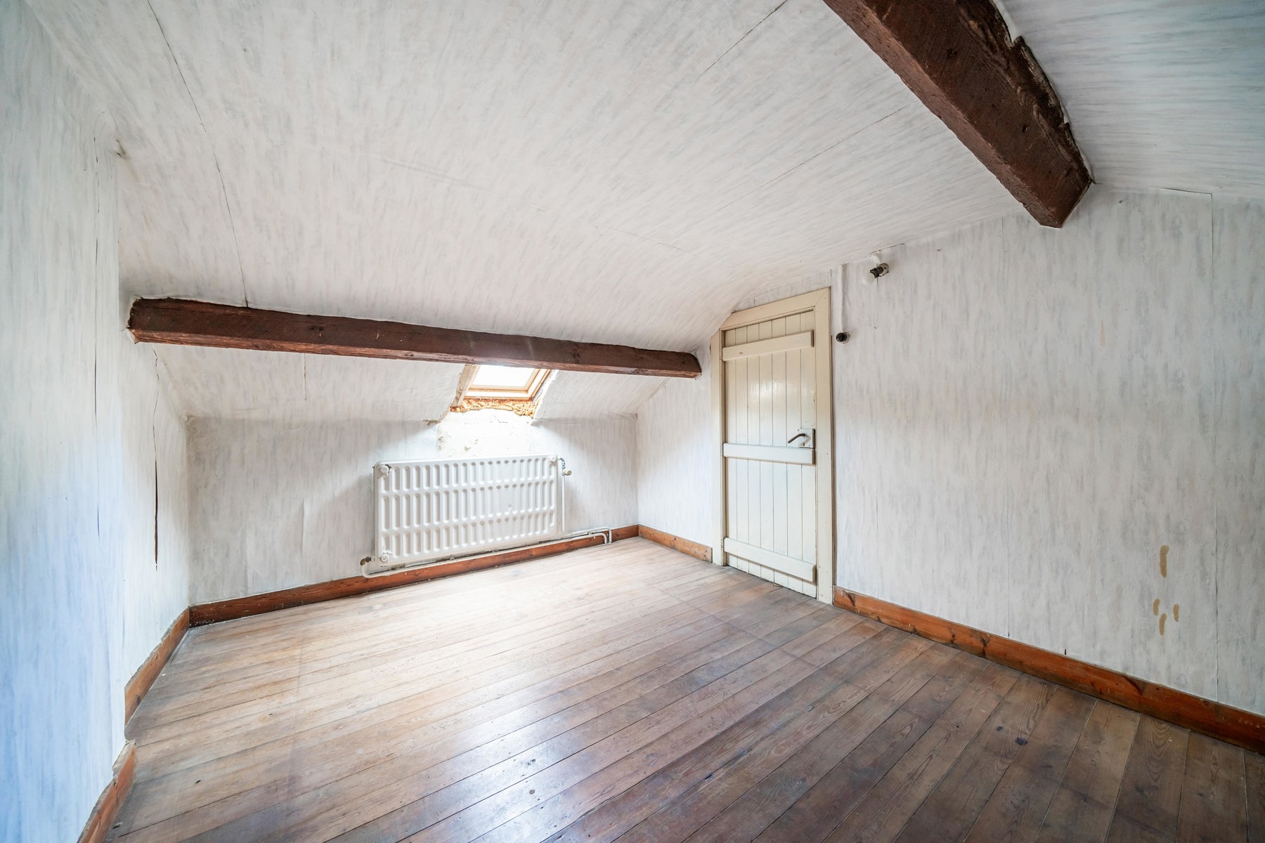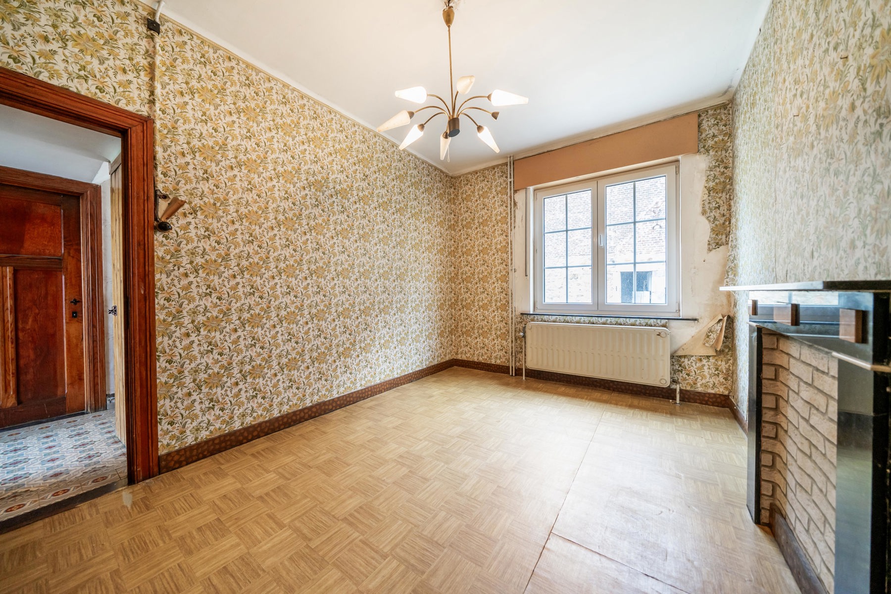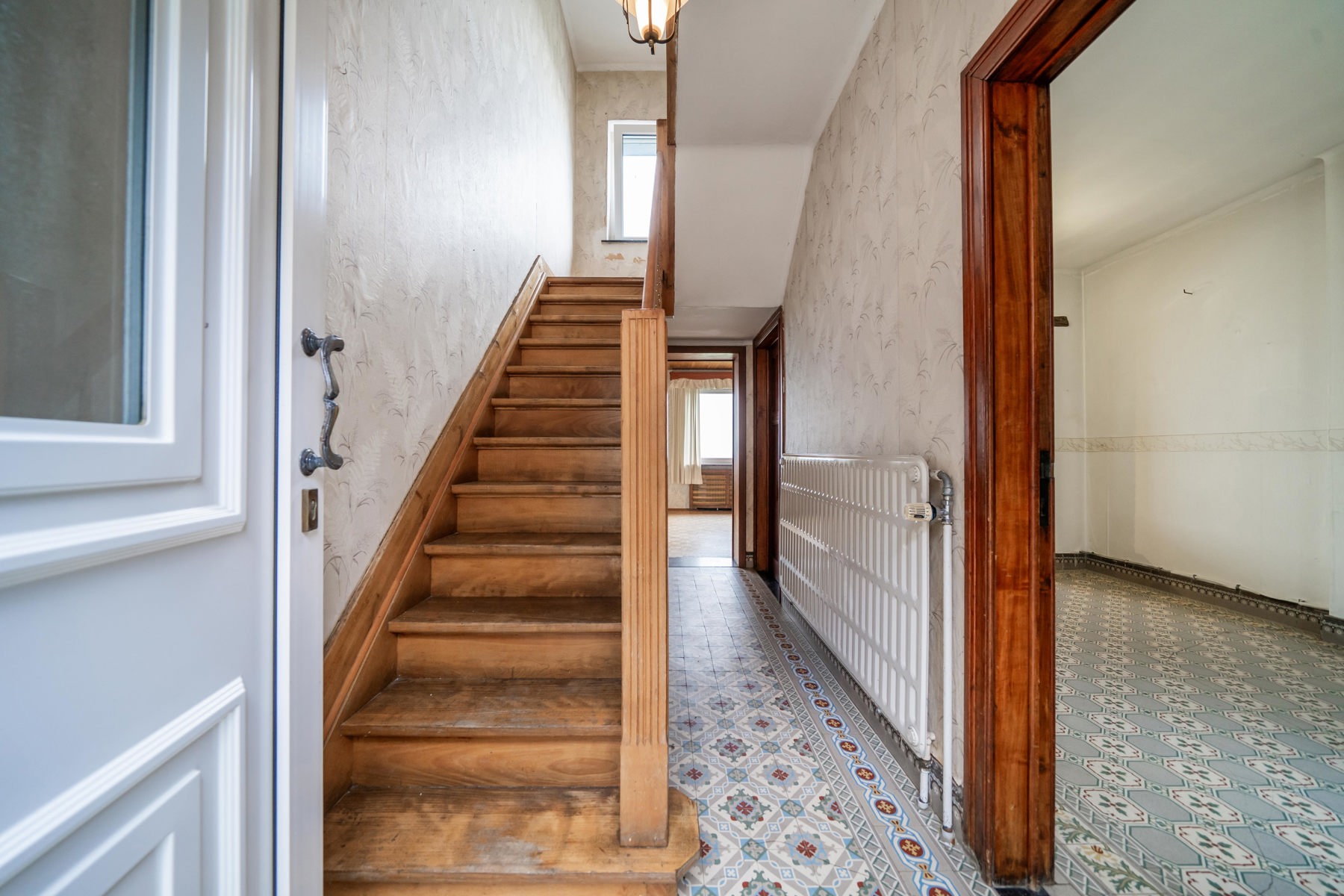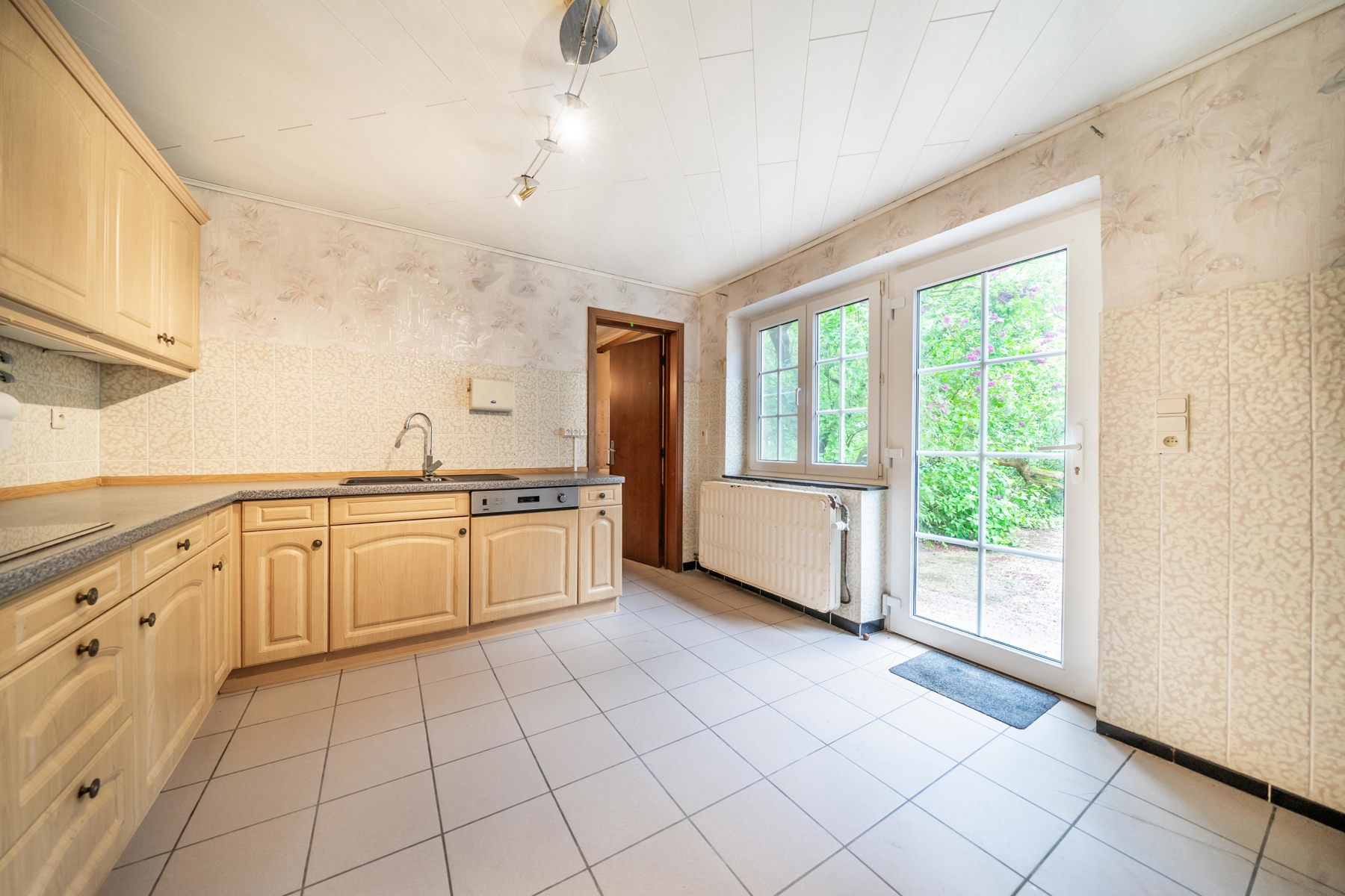 En retrait d'une rue calme en plein centre d'Henri-Chapelle, fermette 5 chambres avec grange, garage, cour et jardin.