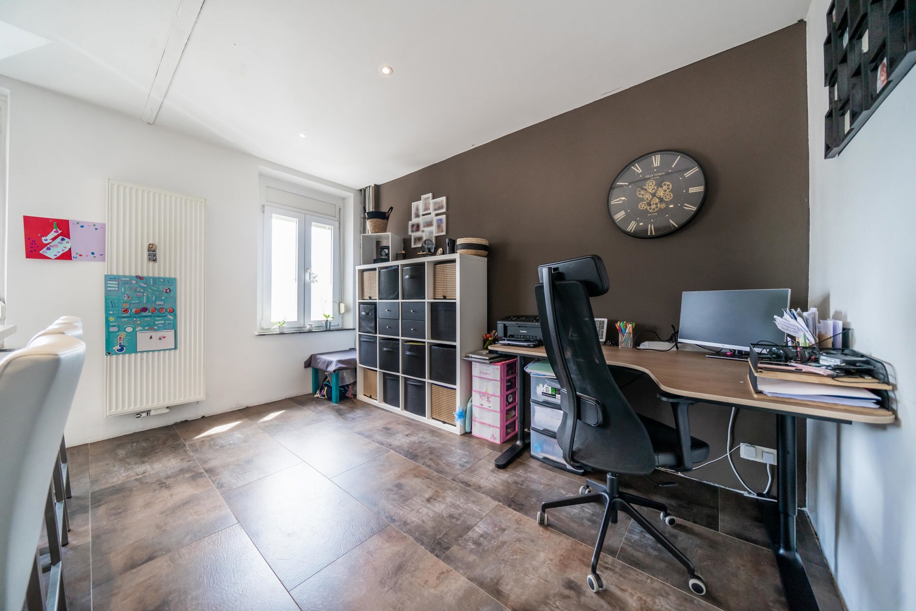 Le bien se compose au rez-de-chaussée d'un hall d'entrée, de deux chambres, d'un dressing et d'une salle de douches. A l'étage, un palier dessert un séjour avec un accès direct sur la terrasse, une cuisine moderne et un espace bureau. Le deuxième étage se compose de deux chambres, d'une salle de bains et d'un WC. Un grenier aménageable (poss. chambre), une terrasse, un jardin et des caves complètent l’ensemble.
