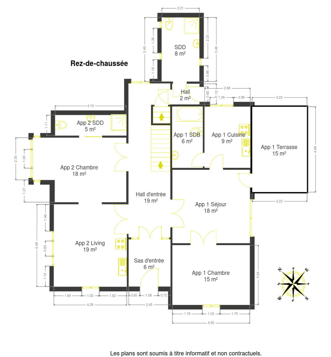 Ce bien se compose au rez-de-chaussée d'un hall d'entrée commun donnant accès à deux appartements une chambre. Au premier étage, le palier dessert un appartement trois chambres avec un balcon. Au deuxième étage, vous y trouverez un appartement deux chambres et un appartement une chambre. Un grand parking avec garage et des caves individuelles complètent l'ensemble.