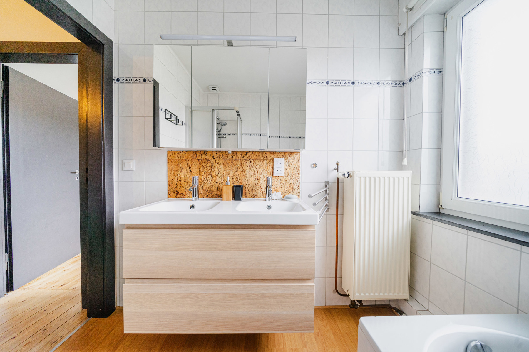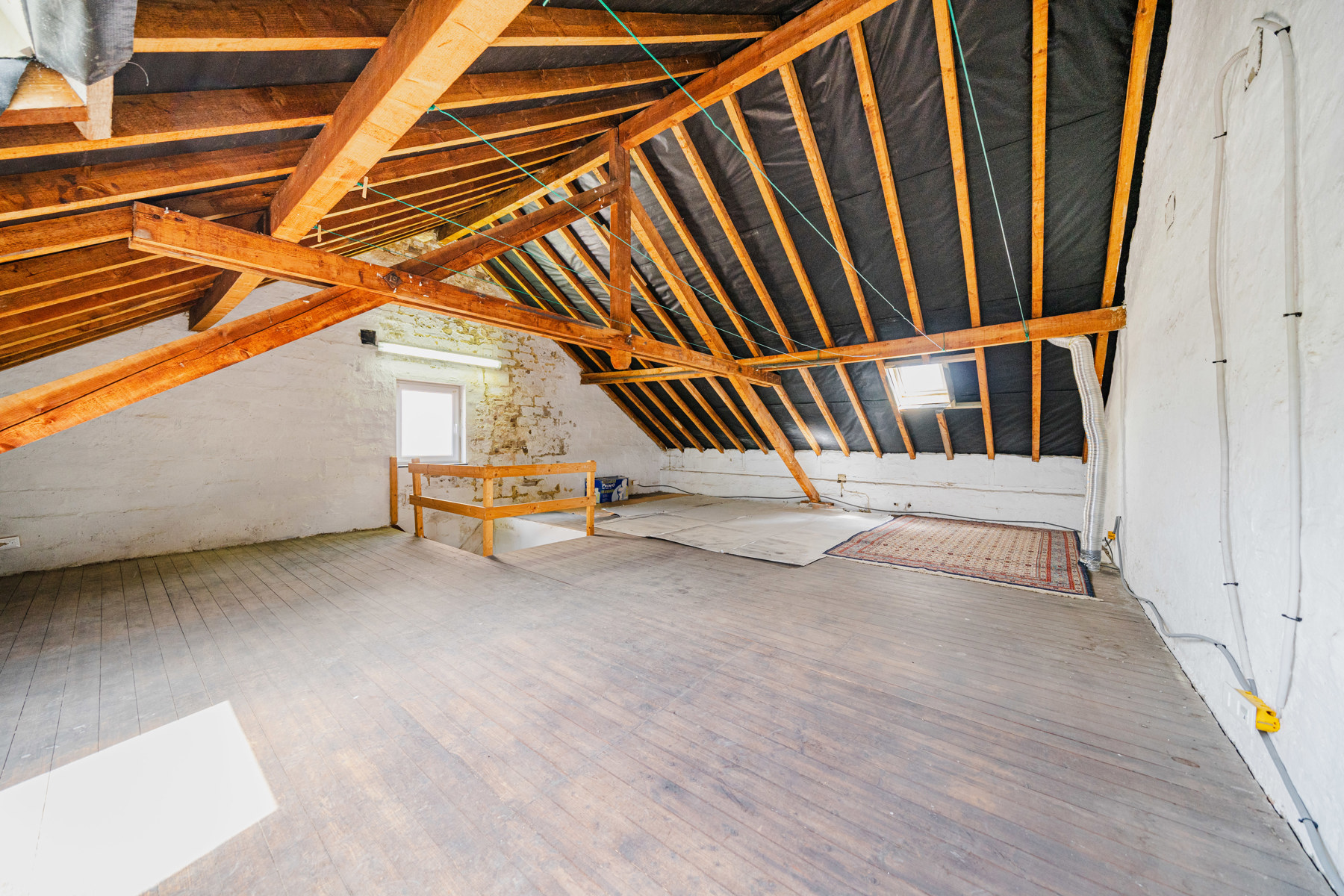 Au premier étage, 3 chambres et une salle de bains avec baignoire et douche. Au deuxième étage, un vaste grenier aménageable de 60m2 (poss. 2 chambres).