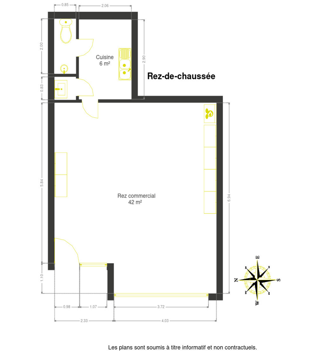 Cette surface se compose d’un espace meublé et lumineux de 42 m2 utile et d'une grande vitrine, idéal pour des bureaux ou une profession libérale.