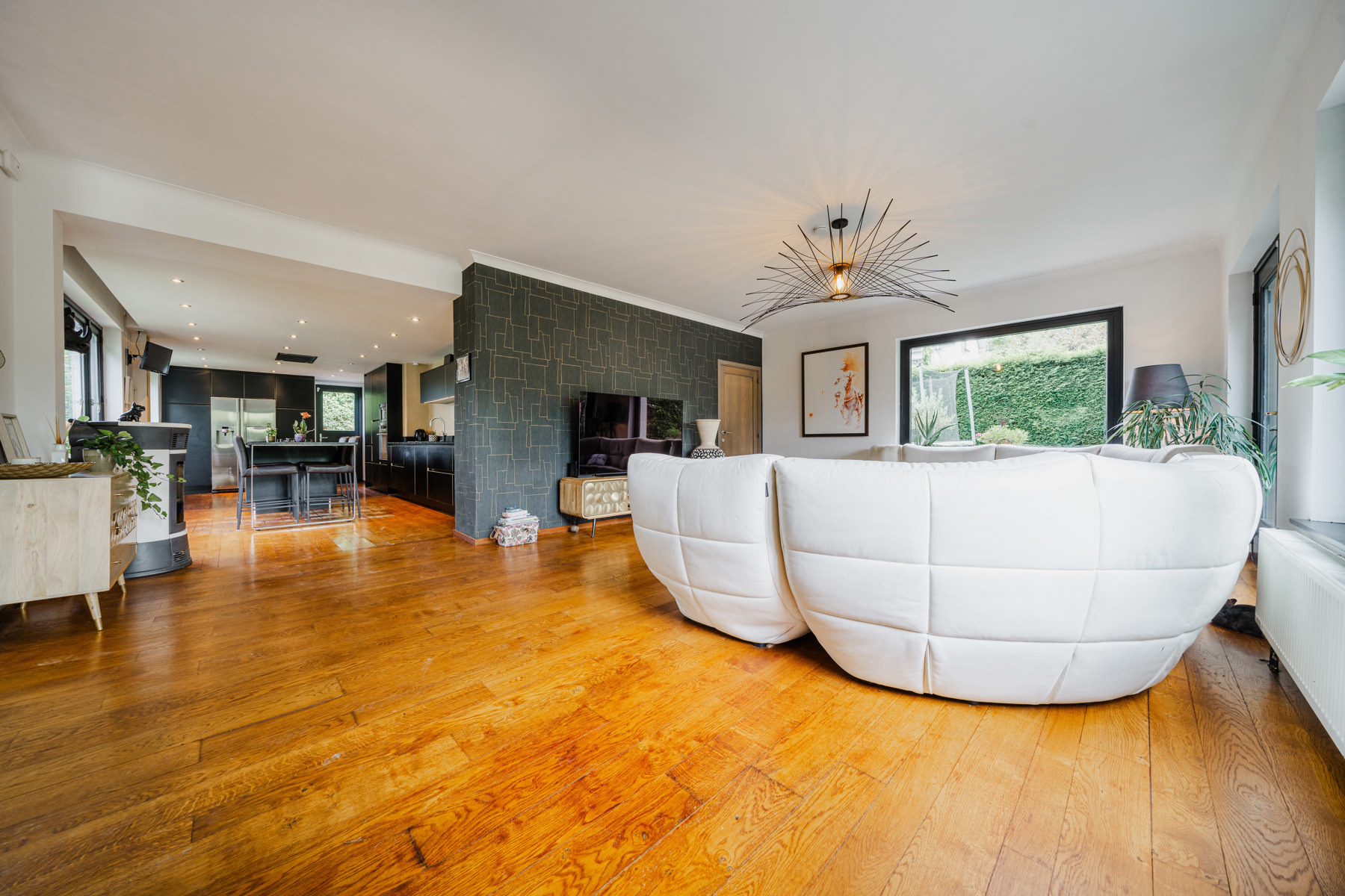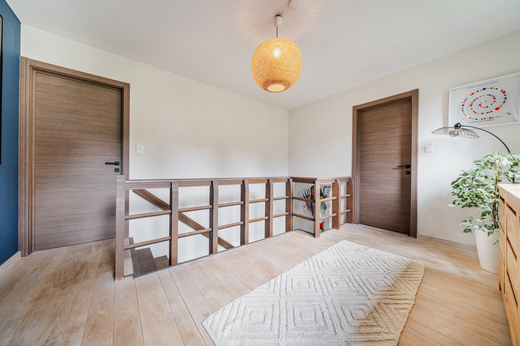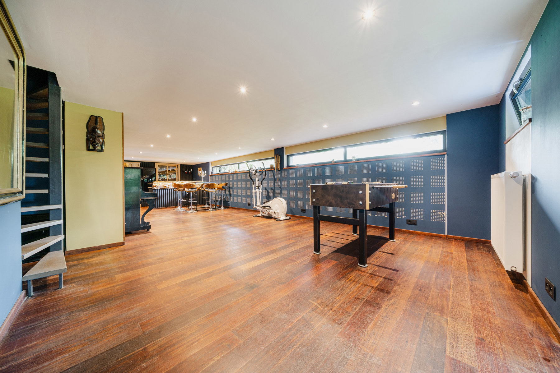 Le bien se compose au rez-de-chaussée d'un hall d'entrée avec WC, d'une cuisine super équipée, d'une arrière cuisine et d'un spacieux séjour donnant accès sur un jardin parfaitement aménagé. A l'étage, un spacieux palier dessert deux chambres, une suite parentale et une salle de bains. Au sous-sol, se trouvent un espace wellness avec jacuzzi et sauna ainsi qu'un spacieux espace de jeux. Des caves ainsi qu'un jardin avec terrasses et piscine complètent l'ensemble.