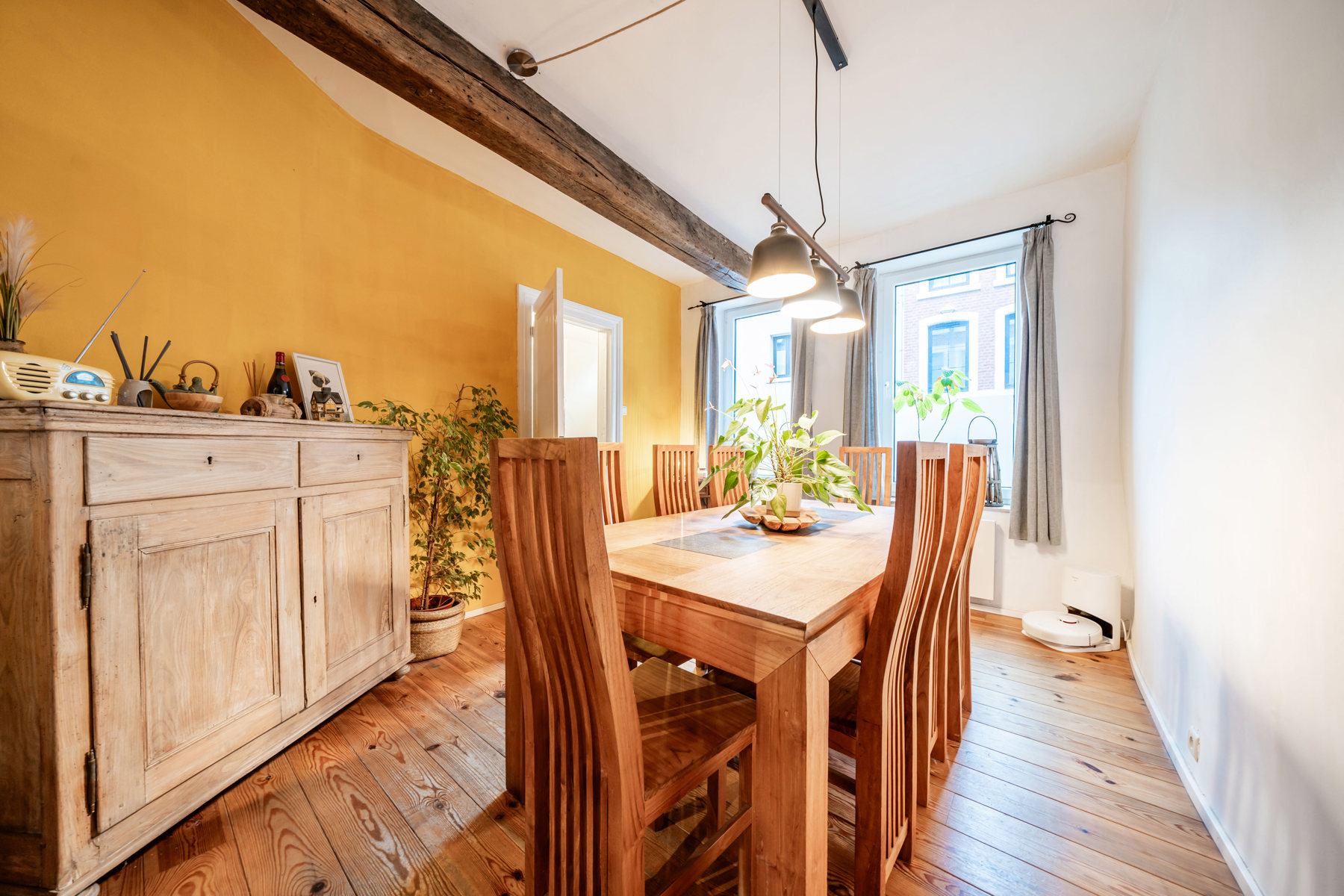 Ce bien, rénové en 2019, alliant le charme de l'ancien et la modernité, se compose au rez-de-chaussée d'un hall d'entrée, d'une salle à manger ouverte sur une lumineuse cuisine avec accès direct à une cour avec une terrasse aménagée. Au premier étage, un palier dessert un espace bureau/chambre avec une salle de bains et un salon cosy. Le deuxième étage dispose d'une spacieuse chambre avec dressing et d'une deuxième chambre avec salle de douches. Le troisième étage se compose quant à lui d'un grenier prêt à être aménagé (poss. 4ème chambre). Une cave complète l'ensemble.