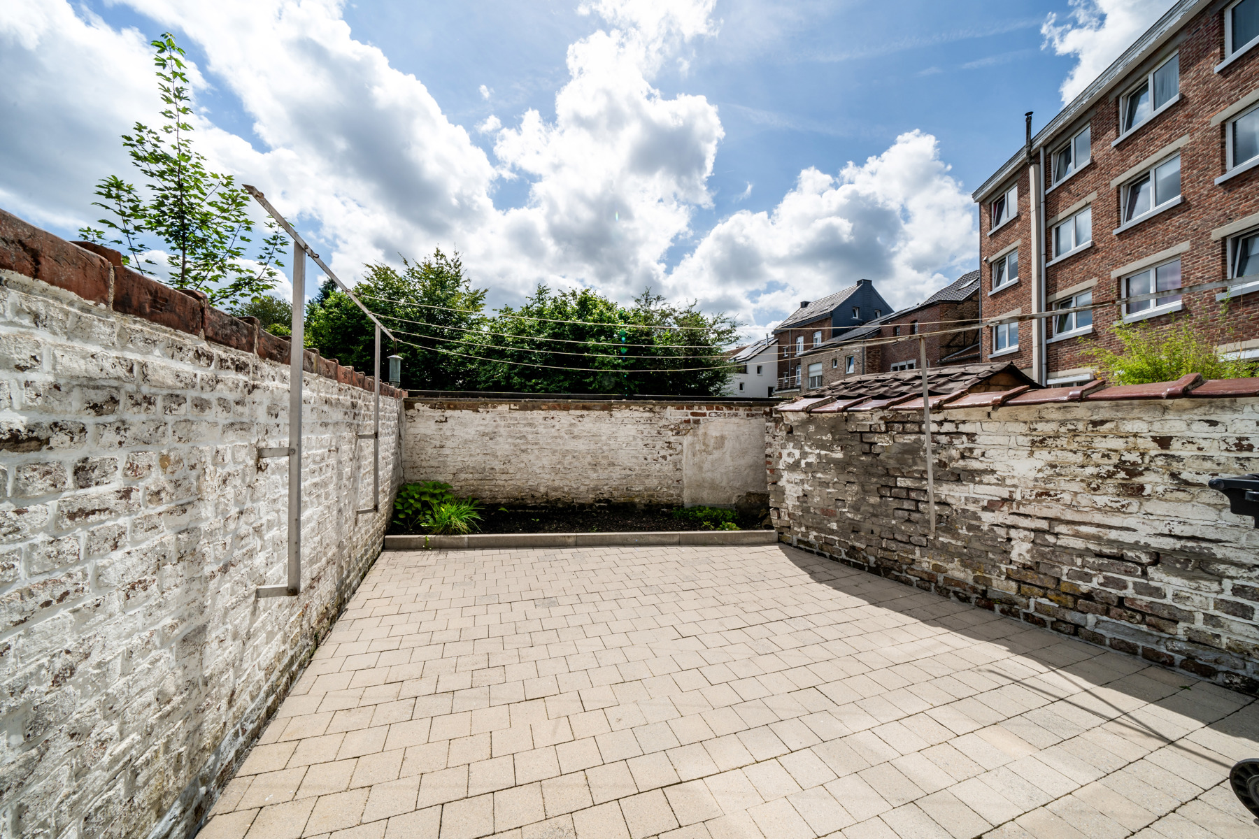 Située au centre de Petit-Rechain, proche de toutes les commodités et des axes routiers, maison trois chambres avec grenier, caves et cour.
