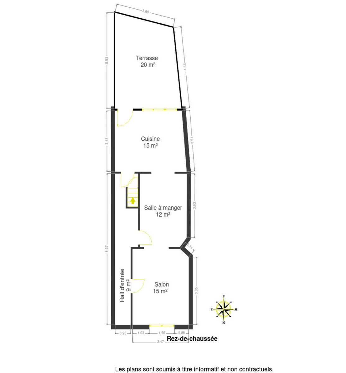 Ce bien se compose au rez-de-chaussée d'un hall d'entrée, d'un spacieux séjour donnant sur une cuisine ouverte et lumineuse permettant l'accès à une cour aménagée. Les étages se composent de trois chambres et d'une spacieuse salle de bains. Des caves et un grenier de stockage complètent l'ensemble.