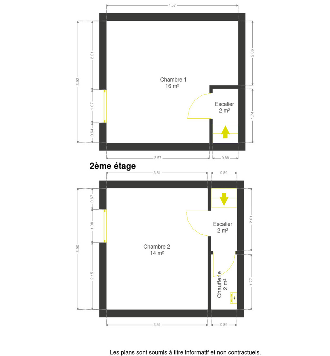 Situé au premier étage d'une résidence calme sans ascenseur, ce bien se compose d'un hall d'entrée avec WC, d'une salle de bains ainsi que d'un lumineux séjour ouvert sur la cuisine équipée. Au deuxième étage, les deux escaliers desservent à chaque fois une chambre. Une cave privée ainsi que deux places de parking à l'extérieur complètent l'ensemble.