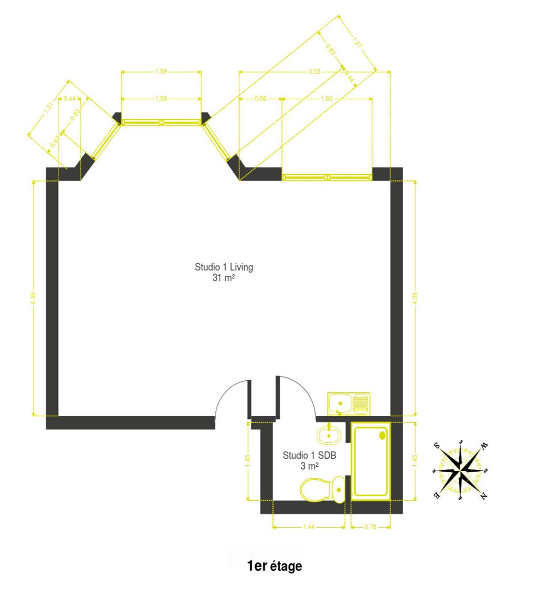 Situé au premier étage d'un immeuble de maître, le studio se compose d'un lumineux séjour de 31m² avec cuisine complètement équipée et d'une salle de douches avec WC.