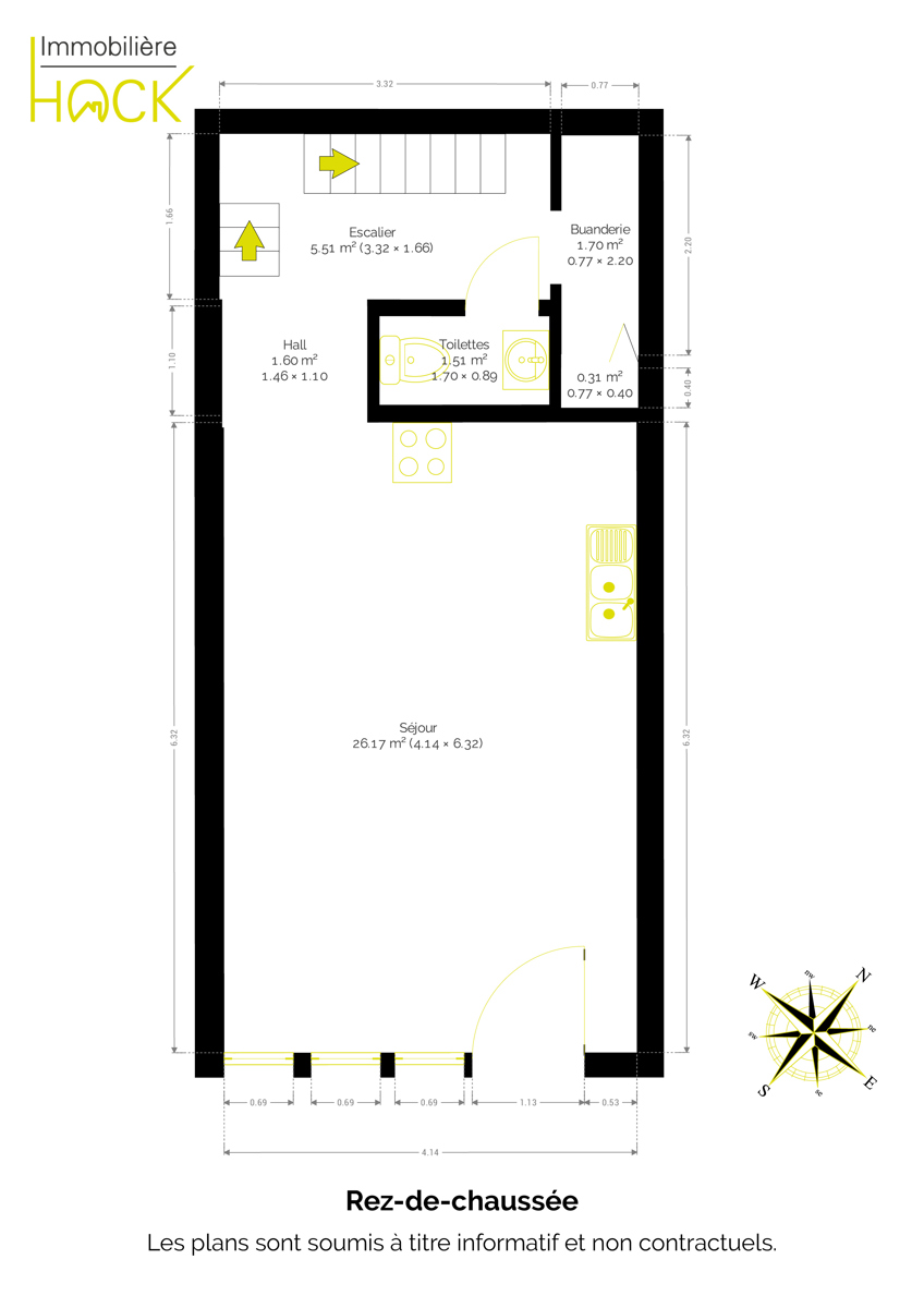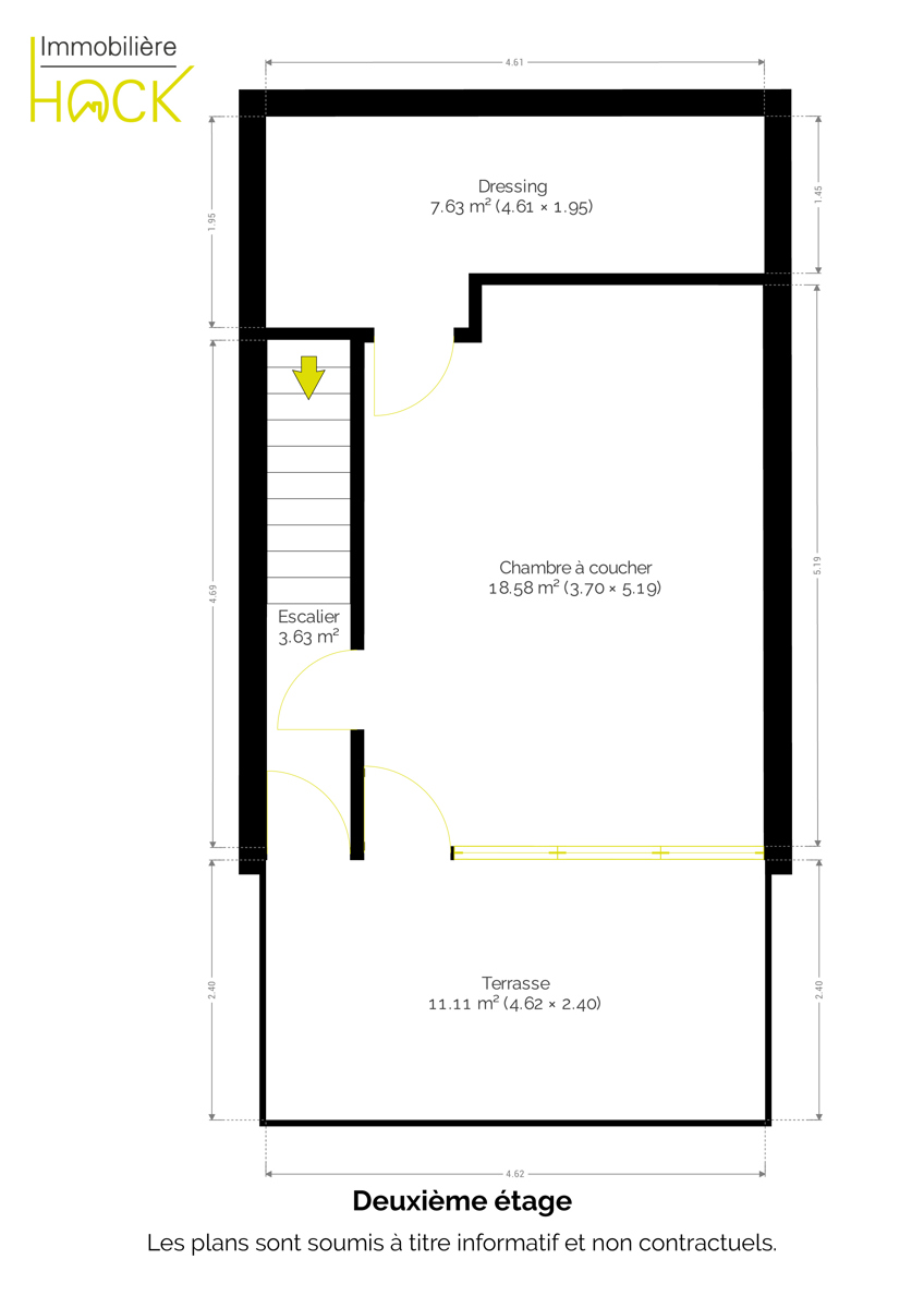 Ce bien se compose, au rez-de-chaussée, d'un lumineux séjour/salle à manger avec cuisine, d’un WC et d’une buanderie. Au premier étage un hall dessert un espace bureau, une salle de bains et une chambre. Au deuxième étage se trouve une grande chambre avec dressing donnant un accès direct à la terrasse.