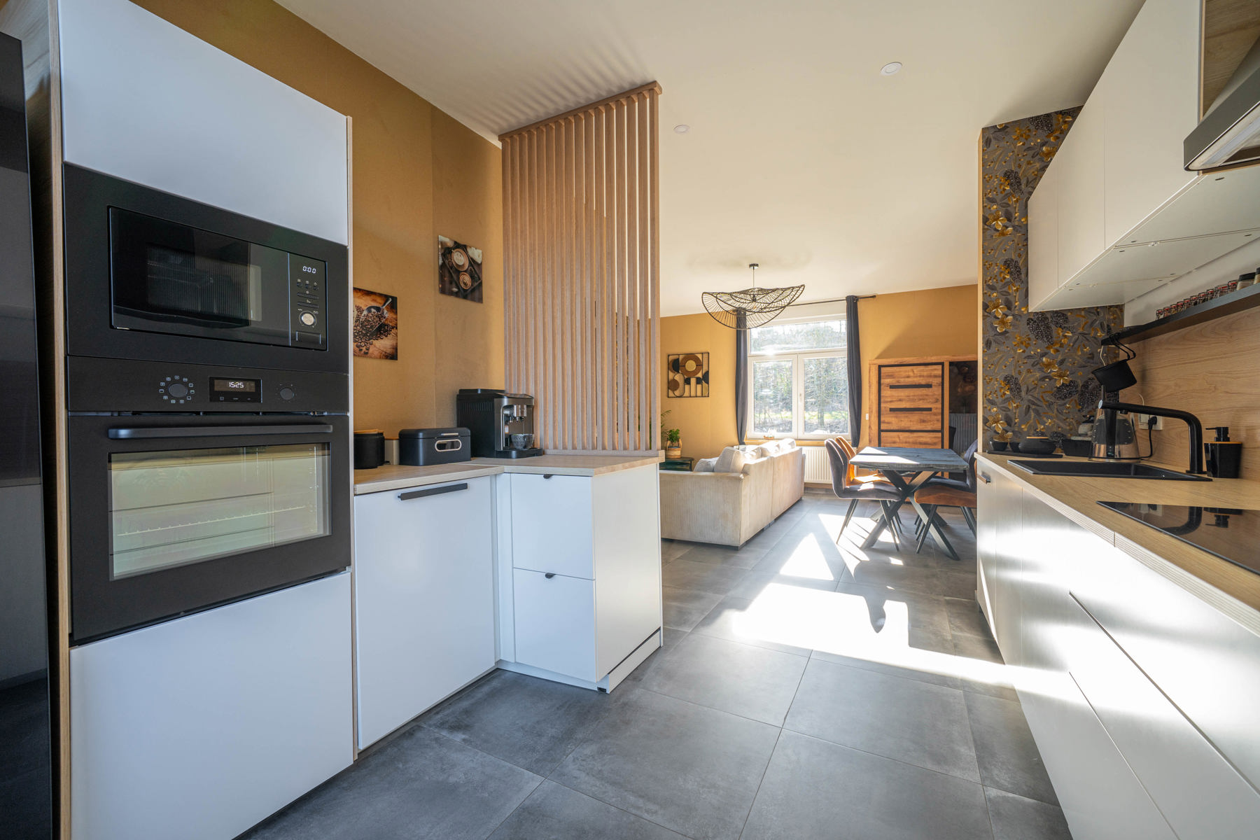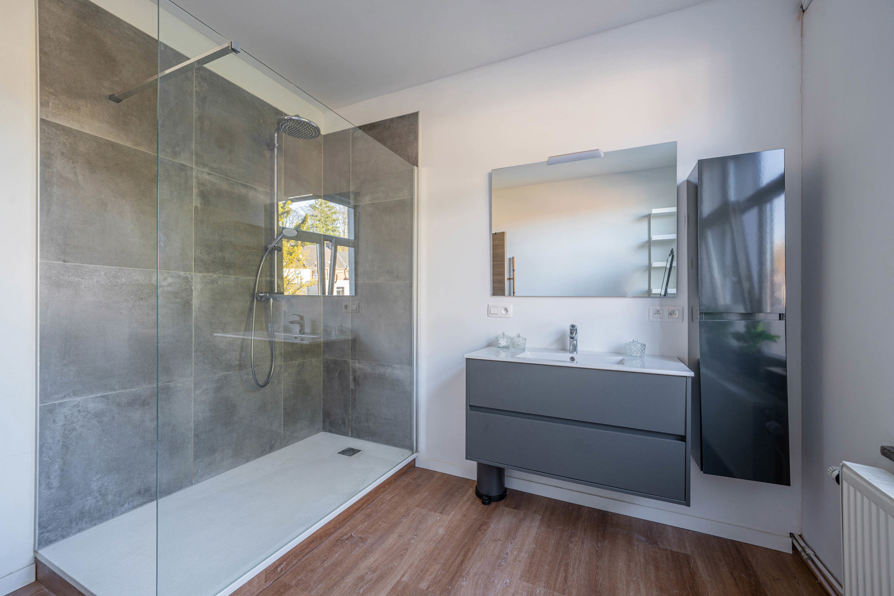 Située proche du centre de Dolhain, dans une rue calme, maison entièrement rénovée trois chambres avec terrasse et jardin.