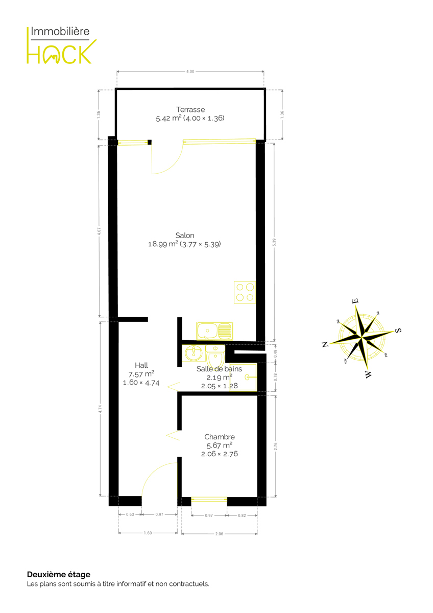 Ce bien se compose d'un hall d'entrée, d'un séjour ouvert sur la cuisine équipée, d'une terrasse, d'une salle de bains ainsi que d'une chambre.
