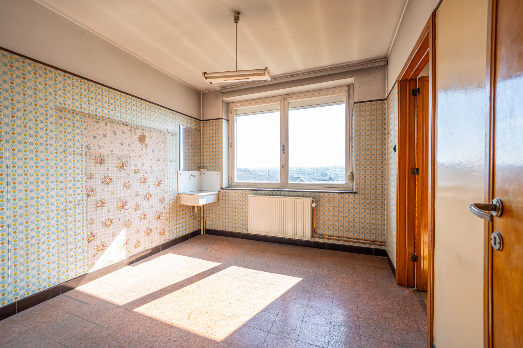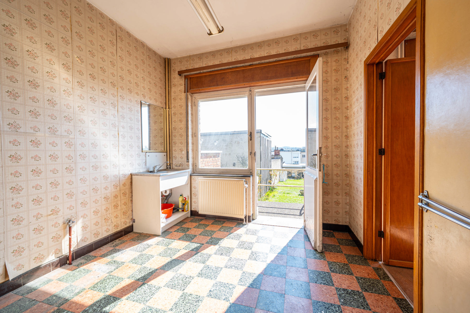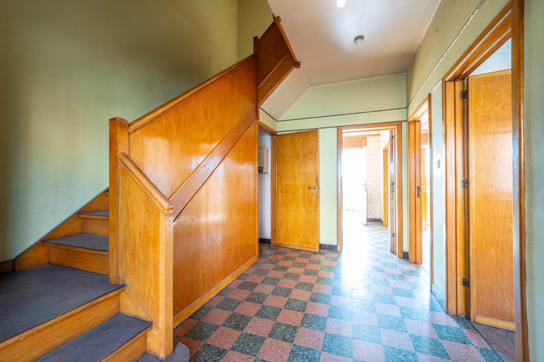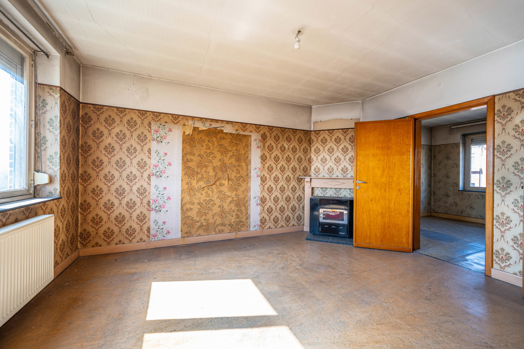 Située sur un axe central à proximité d'Andrimont village et de toutes ses commodités, maison 5 chambres, 2 garages, caves, terrasse et jardin à rénover.