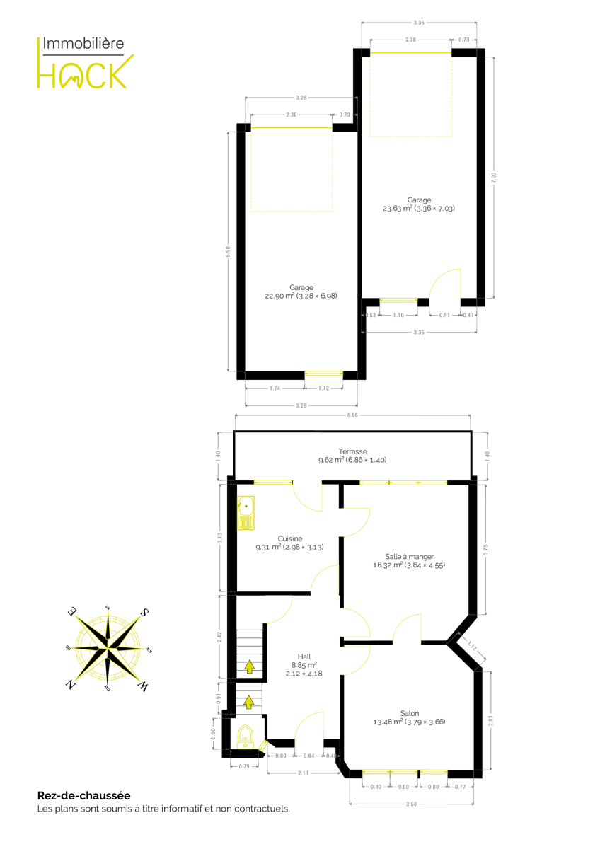 | Titre du bien | Y - Maison 5 ch avec garages, caves, terrasse et jardin |