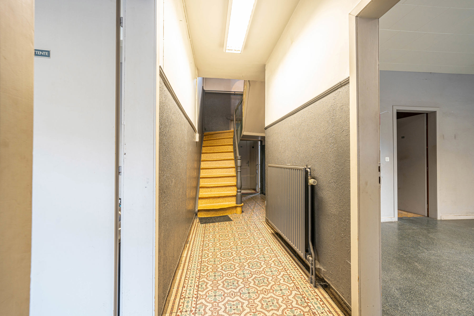 Située en plein centre de Welkenraedt, maison de commerce et habitation avec entrepôt de ±630 m².