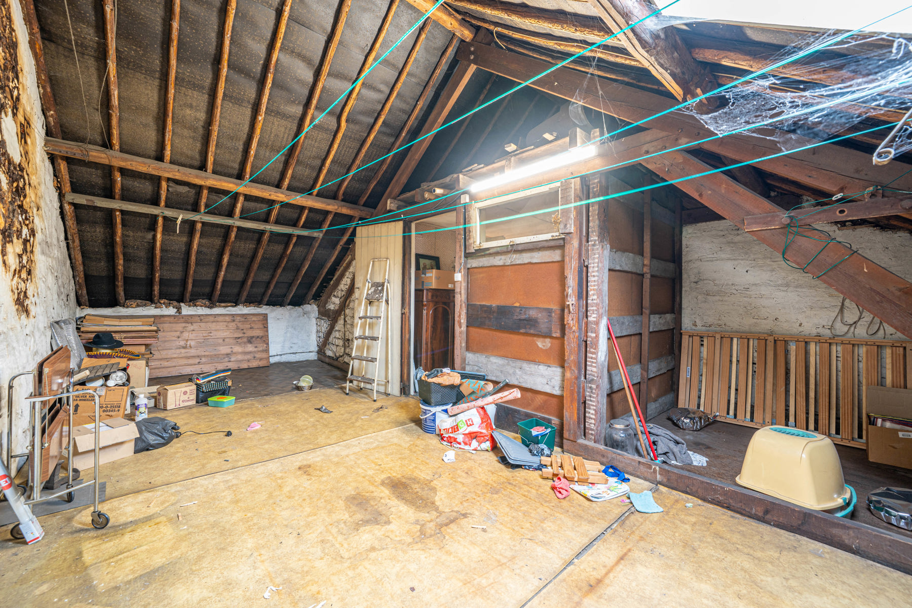 À l’étage, le palier dessert un séjour, une cuisine, deux chambres et une salle de bains. Au deuxième étage, le grenier est divisé en trois pièces pouvant être aménagées en chambres.