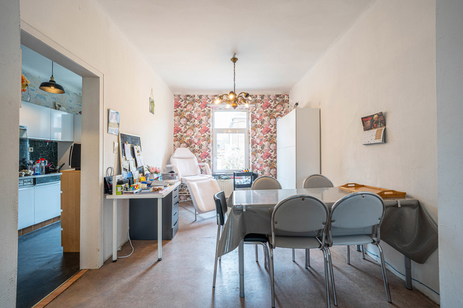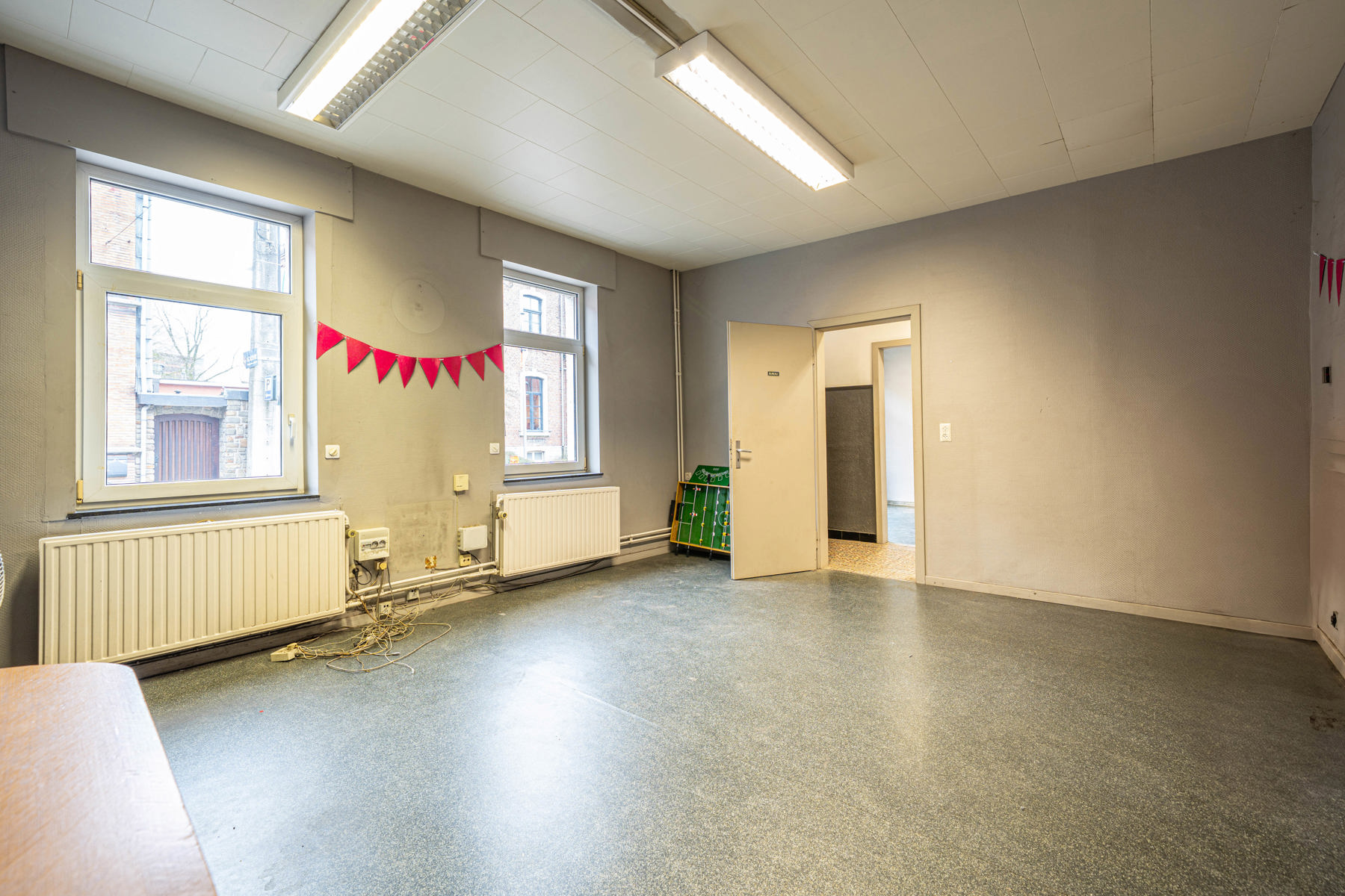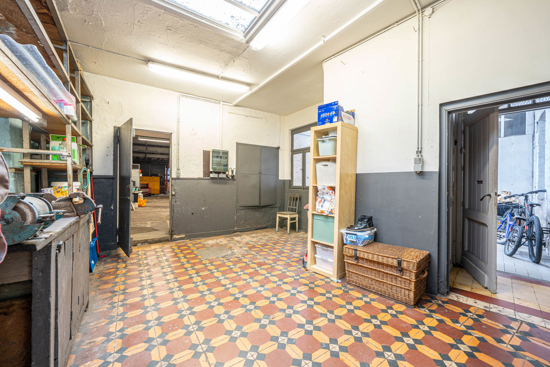 Ce bien se compose au rez-de-chaussée d’un hall d’entrée, de deux pièces polyvalentes, d’une cuisine et de deux pièces de stockage, dont l’une mène à l’entrepôt.