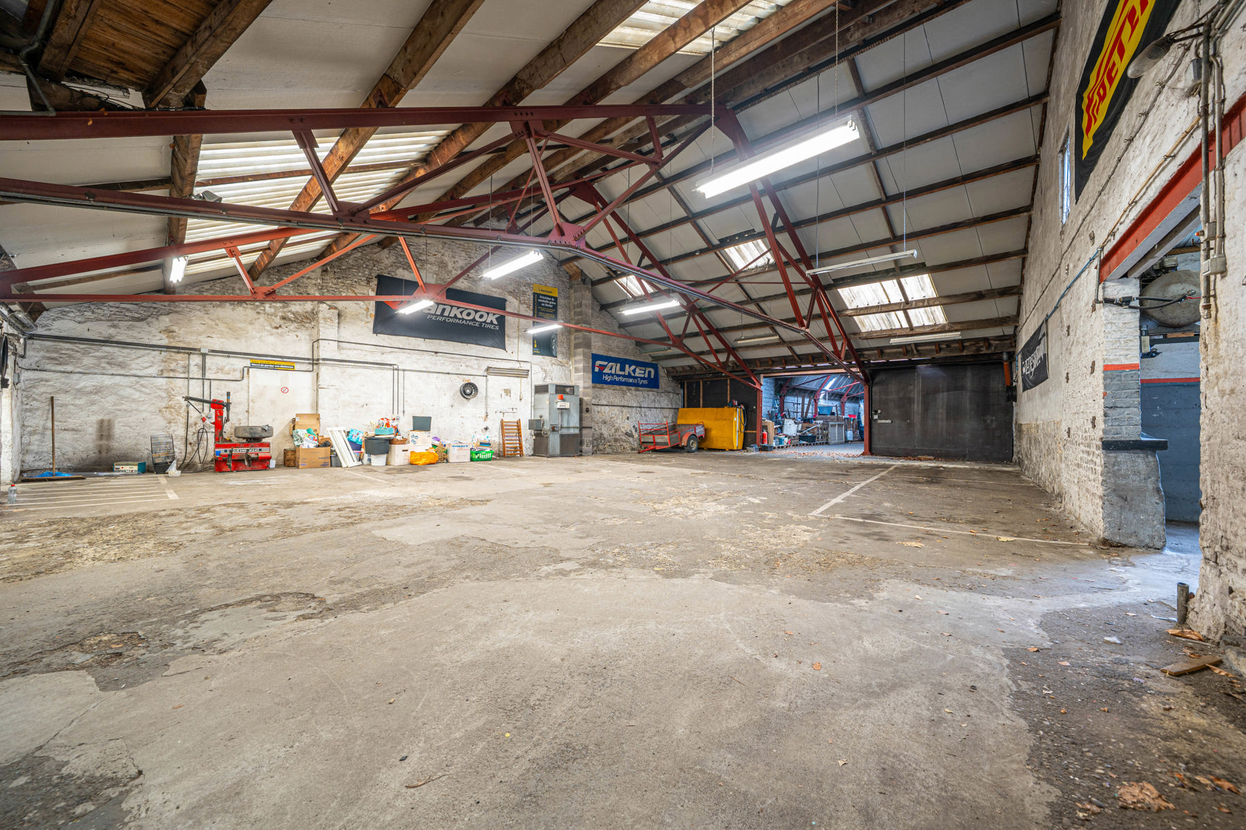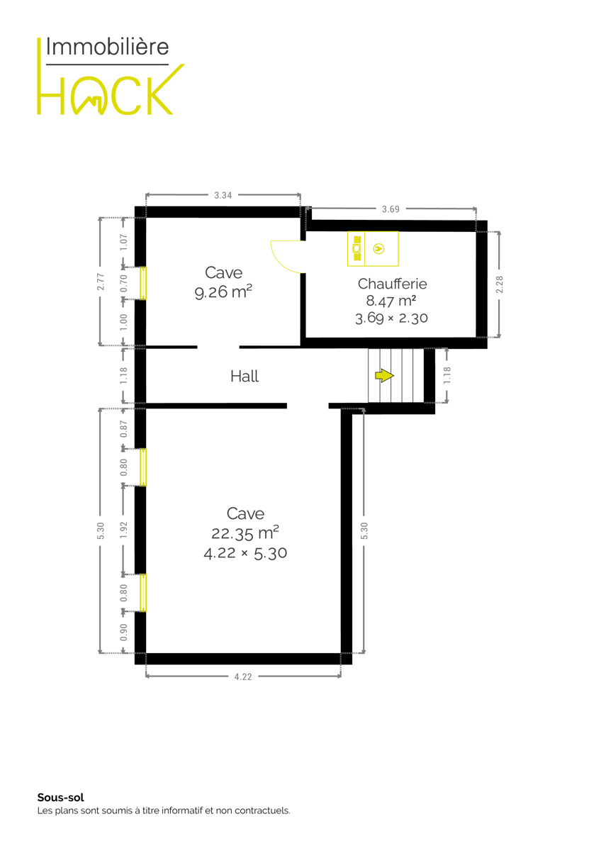 Des caves ainsi qu’un entrepôt d’environ 630 m², divisé en deux espaces et accessible par une porte électrique située sur le côté du bâtiment, complètent l’ensemble.
