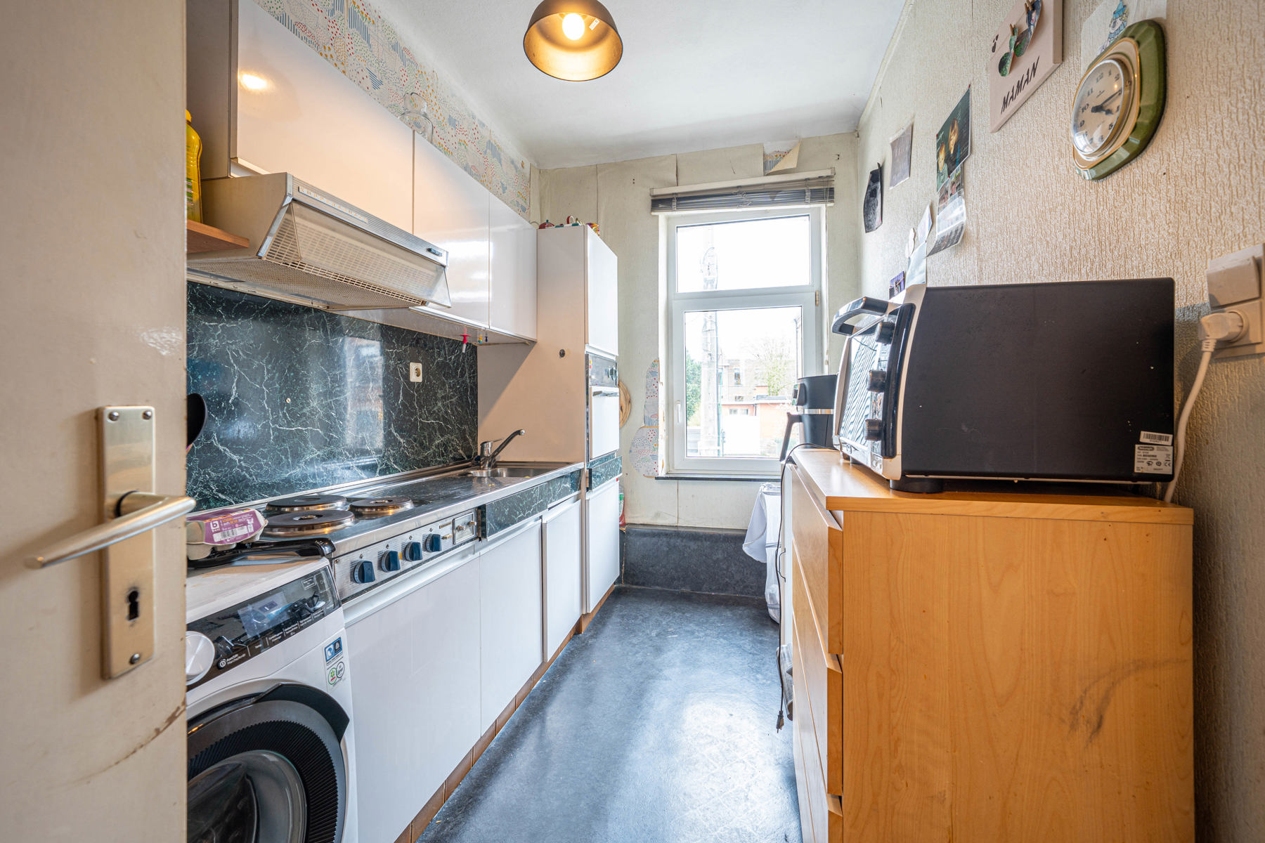 Située en plein centre de Welkenraedt, maison de commerce et habitation avec entrepôt de ±630 m².