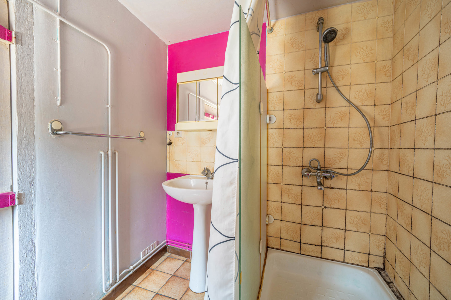 La parcelle de gauche offre une maison d'une superficie de 39,89 m² composée d’un salon, d’une salle à manger, d’une cuisine, d’une salle de douche, ainsi que d’une cave en sous-sol.