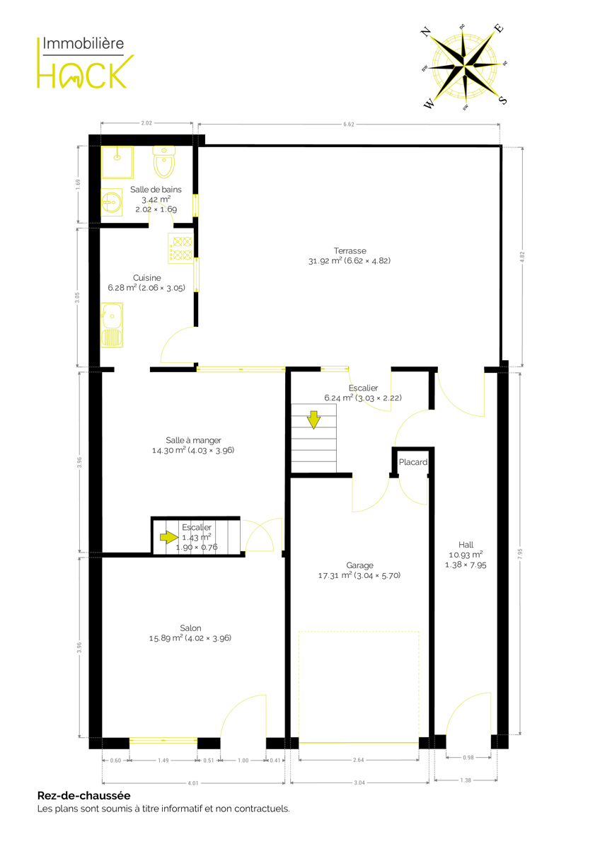 La parcelle de droite offre une maison unifamiliale d’une superficie de 101,79 m² comprenant au rez-de-chaussée un hall d’entrée, un garage et un accès à la terrasse et au jardin. À l’étage, se trouvent une cuisine ainsi que trois chambres, dont l’une peut être aménagée en salon selon les besoins.