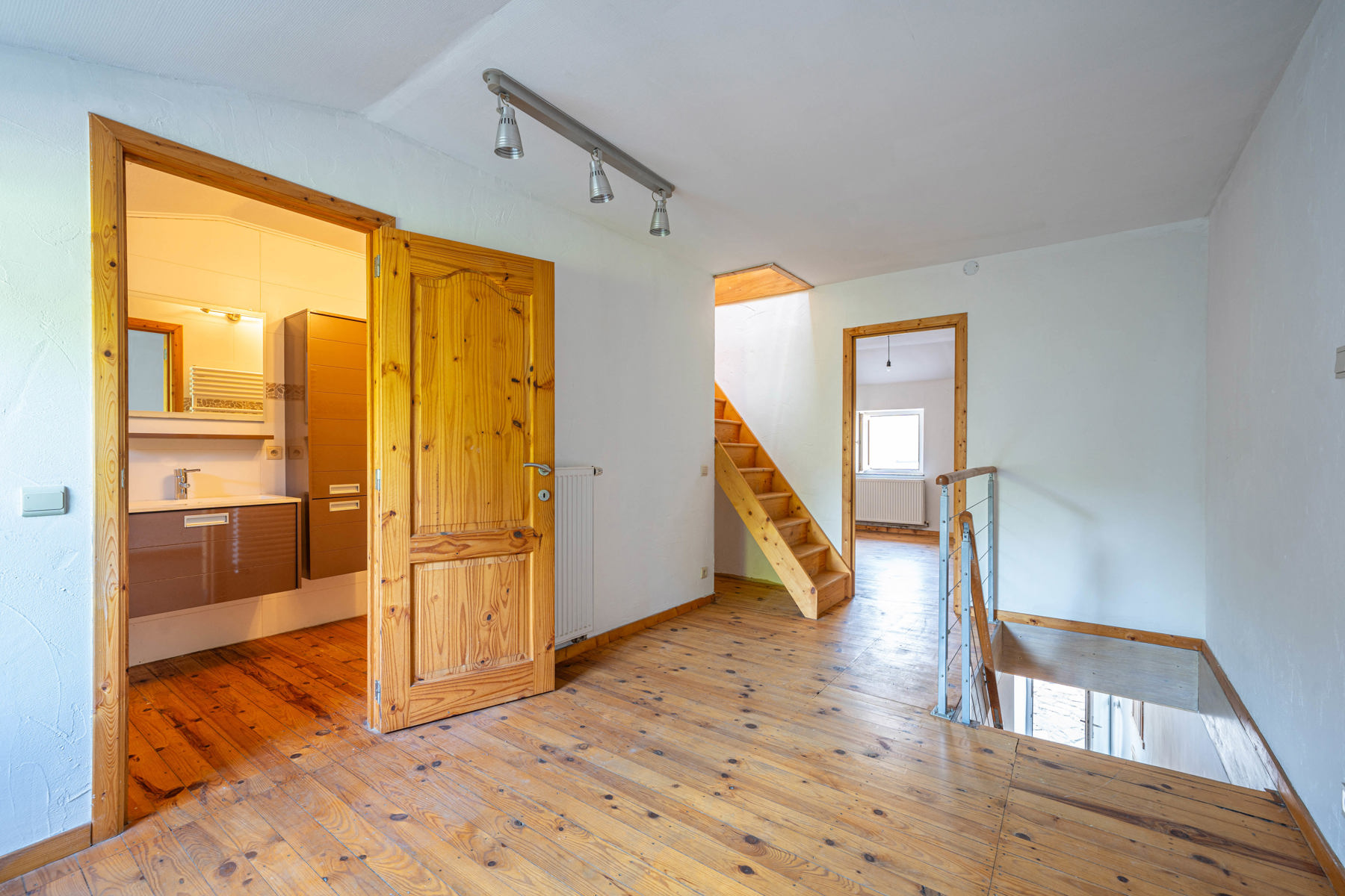 Ce bien se compose au rez-de-chaussée d’un séjour ouvert sur la cuisine et d'une buanderie. Au premier étage, un palier dessert une salle de bains et une chambre. Le deuxième étage offre une spacieuse chambre. Une cour extérieure complète l'ensemble.