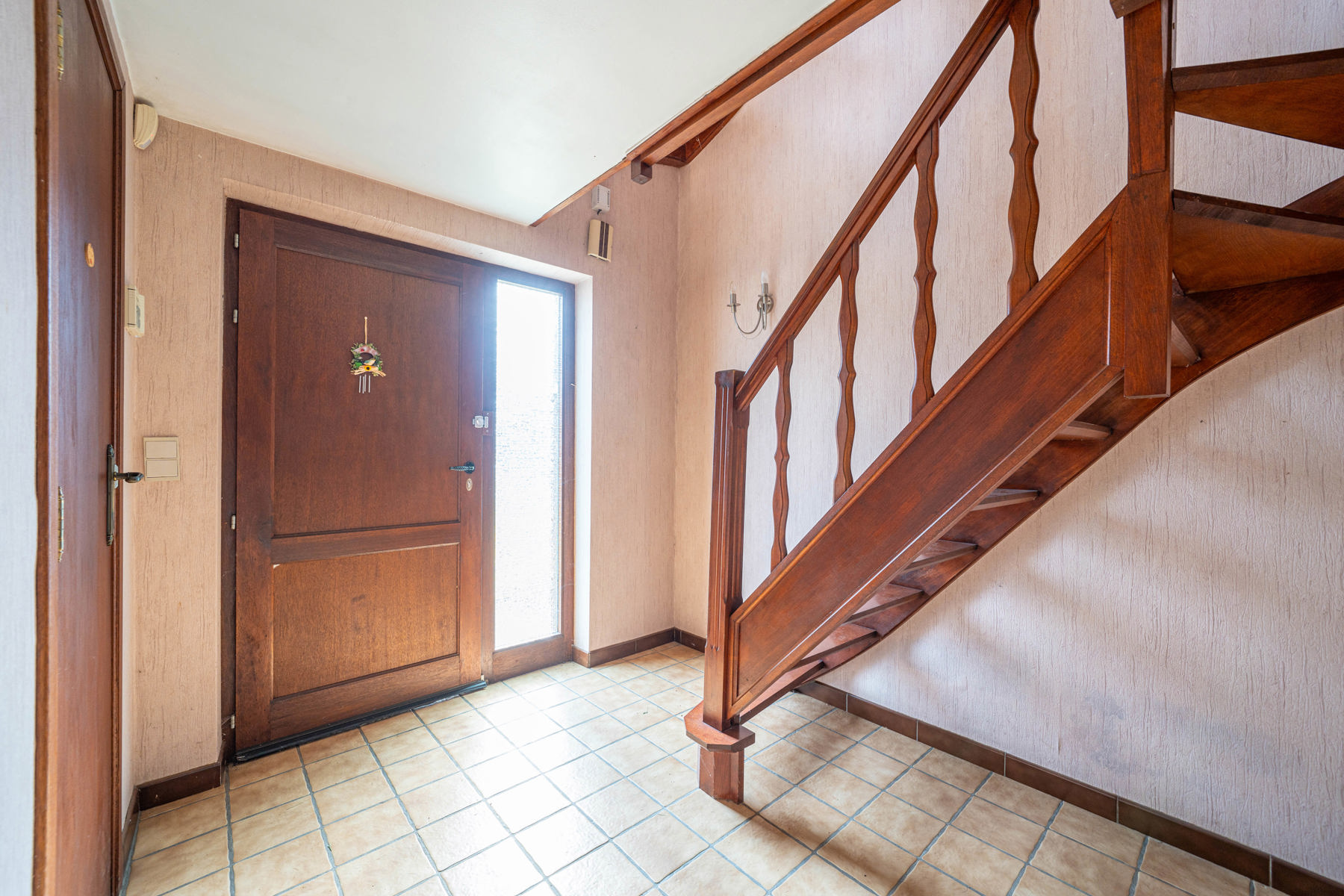 Située dans une rue calme, maison bel étage trois chambres avec garage et jardin.