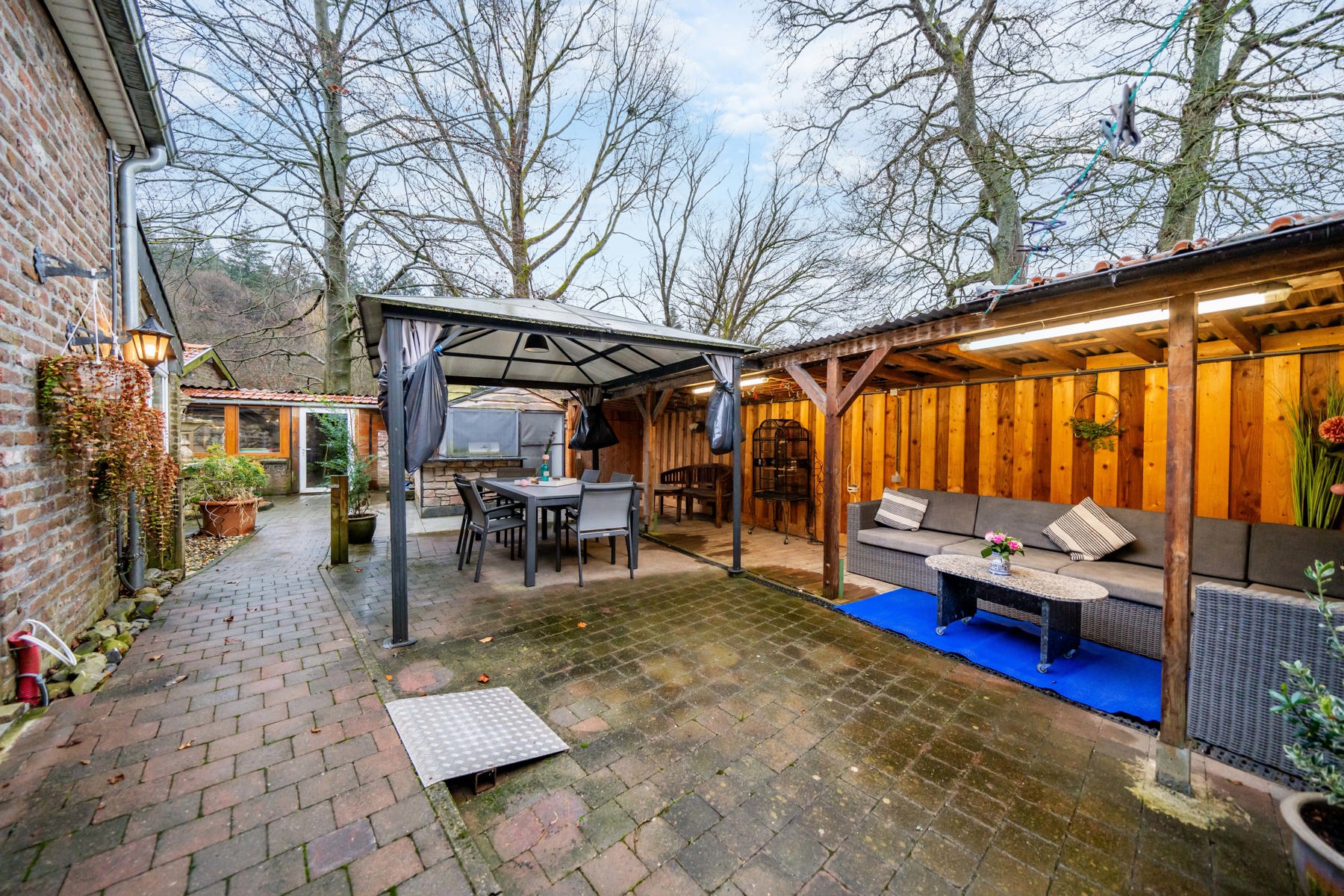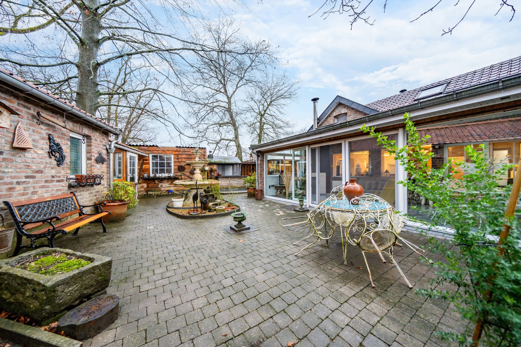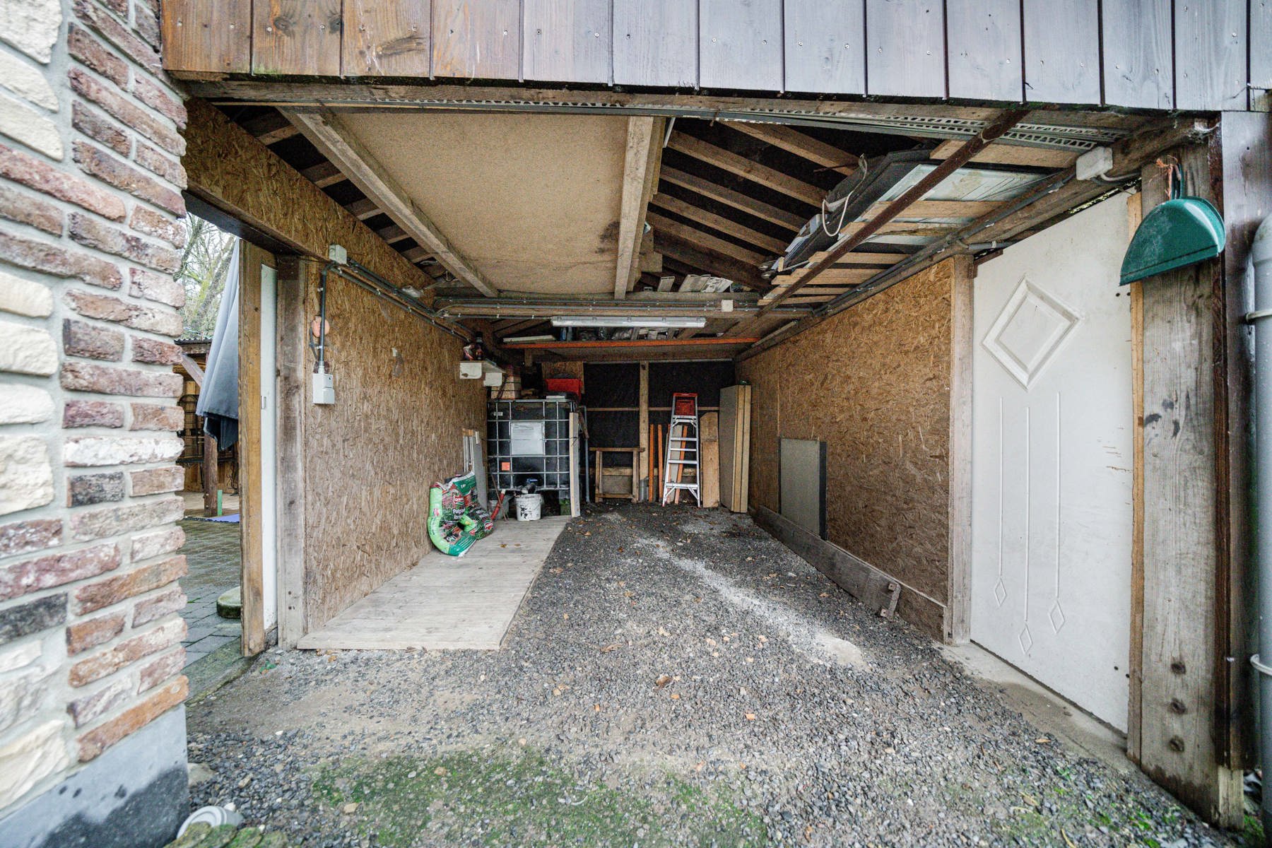 Située en retrait de la route, maison 5 chambres avec grand jardin, deux garages, un carport et des ateliers.