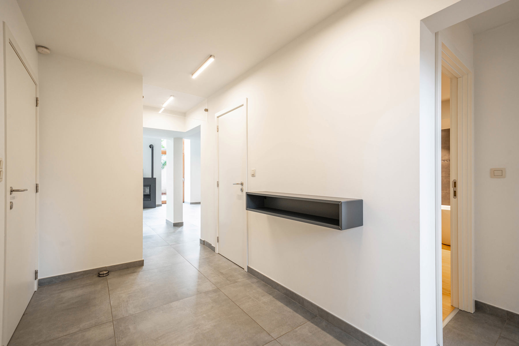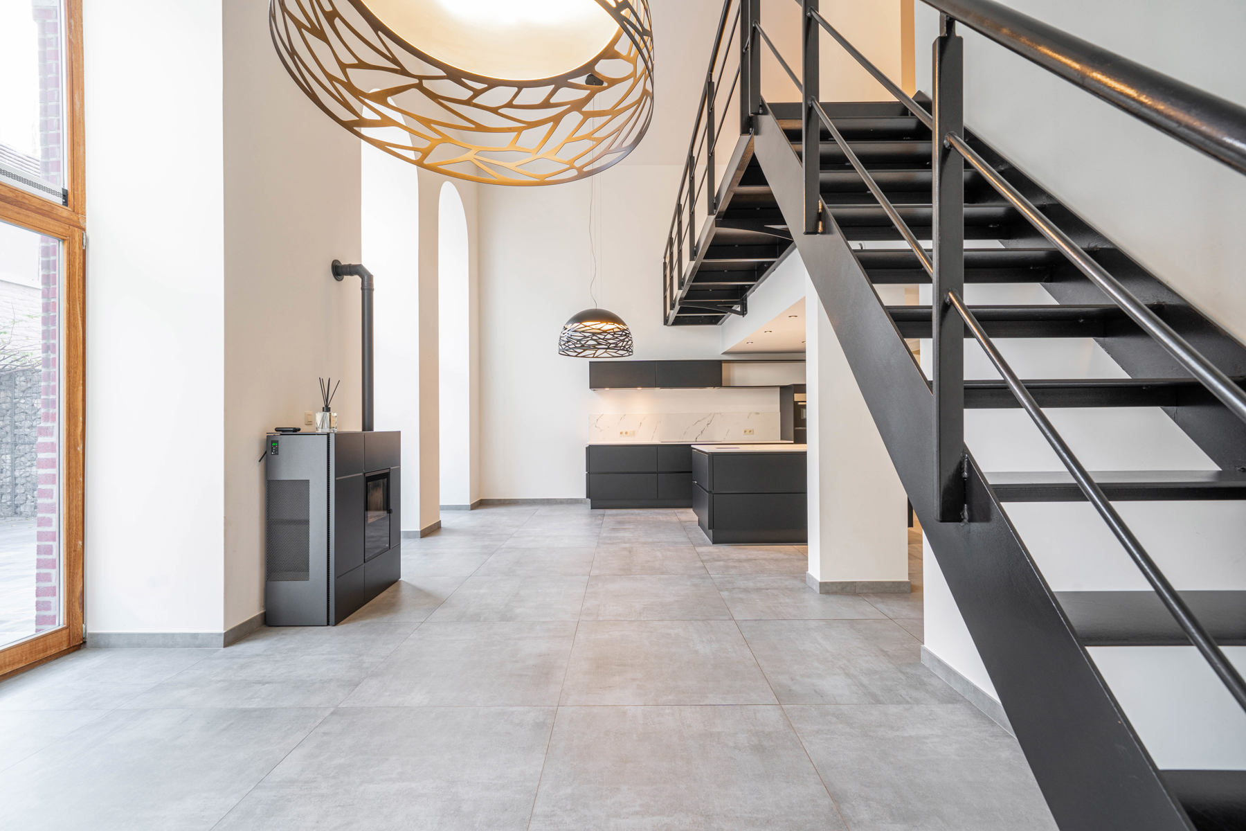 À l’étage, accessible par un escalier moderne, un espace salon au charme atypique ainsi qu’un local de rangement pratique complètent l'ensemble.
