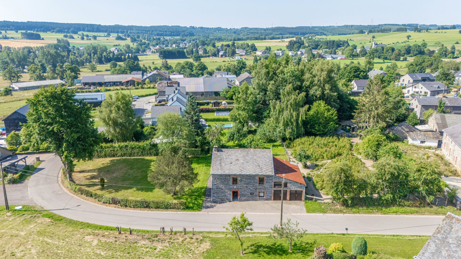 Située dans un cadre verdoyant dans le village de Lierneux, maison 5 chambres avec fenil, cave, garages et jardin.