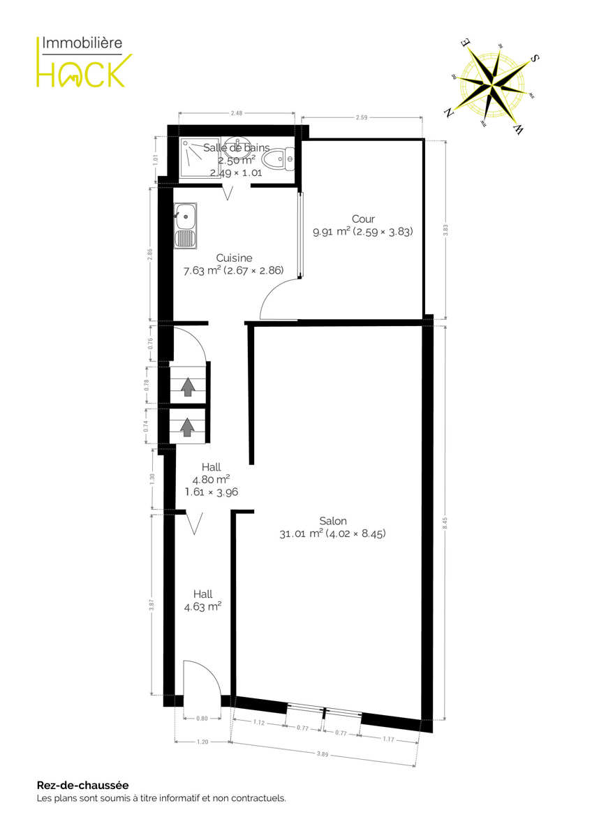 Le bien se compose au rez de chaussée d'un hall d'entrée, d'un spacieux séjour, d'une cuisine et d'une salle de douches.