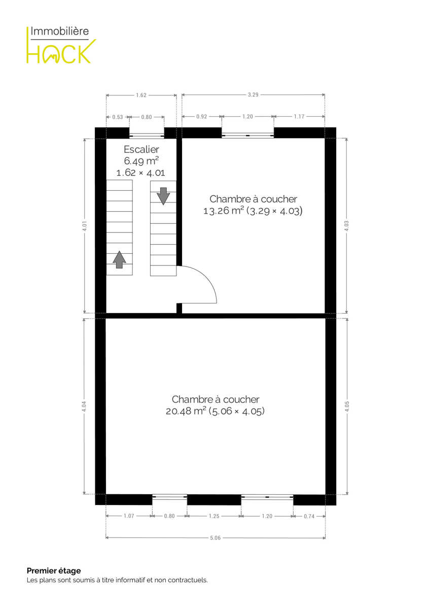 Les étages se composent de quatre spacieuses chambres reparties sur deux niveaux. Des caves et une cour complètent l'ensemble.