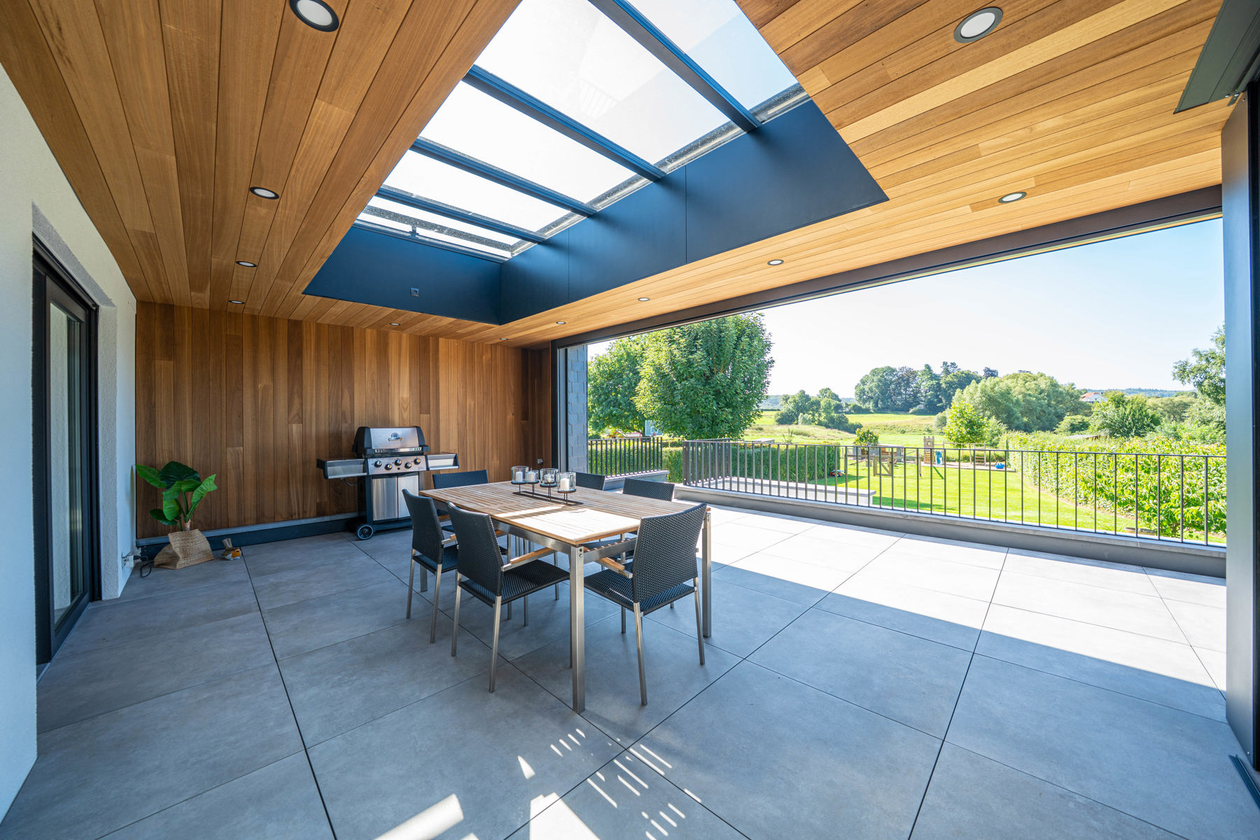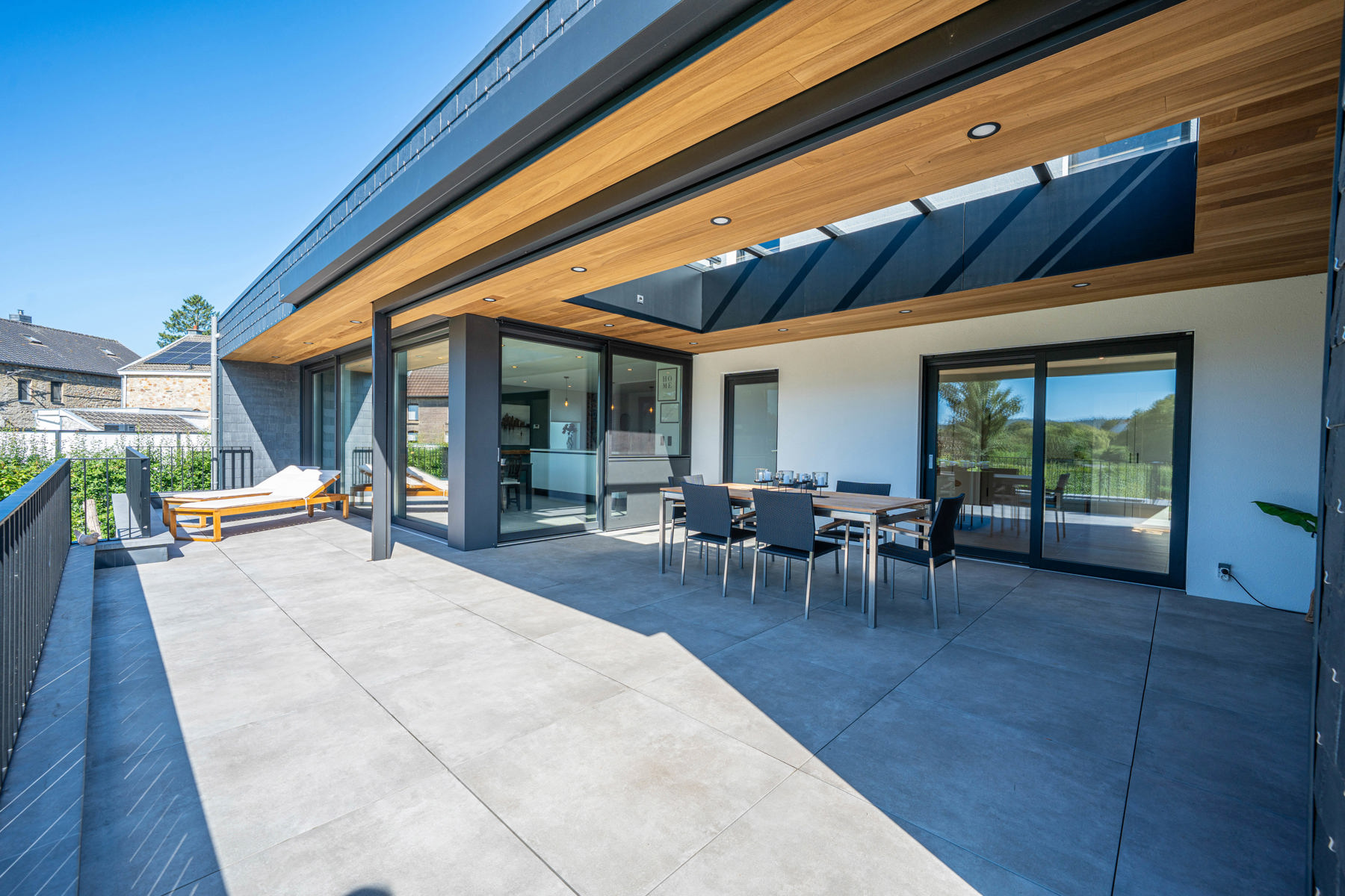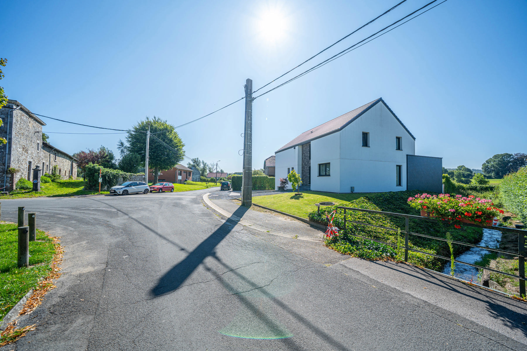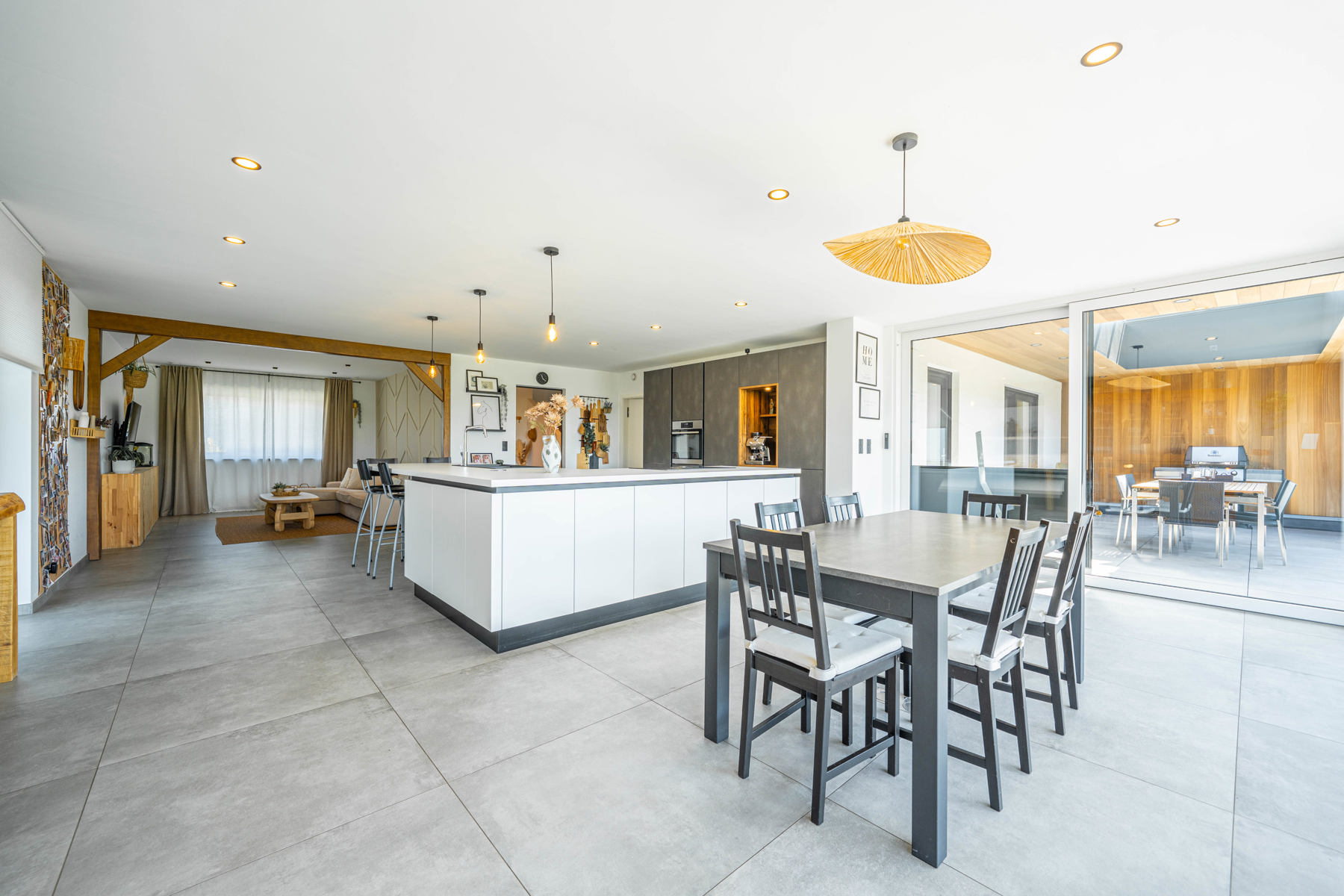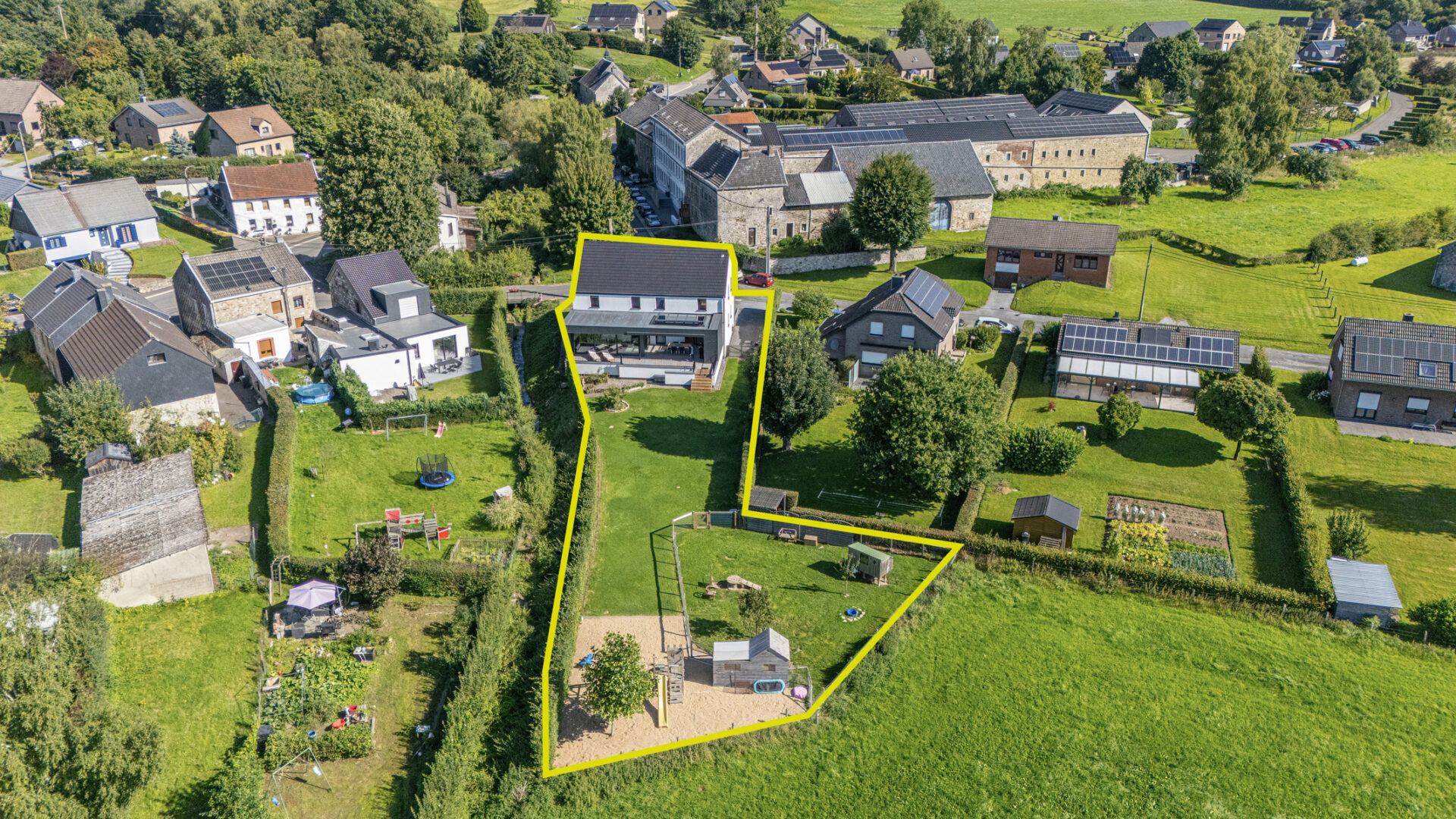 Située au cœur du village de Membach avec une vue imprenable sur la campagne, magnifique villa 6 chambres (poss. 7) avec terrasse couverte, jardin, garage et grandes caves.