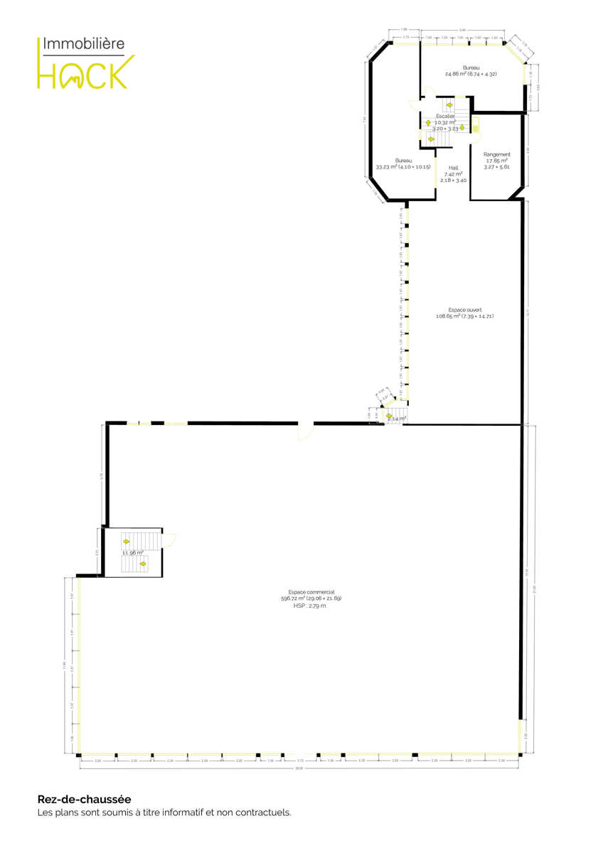 Ce bien se compose d'un grand espace ouvert (showroom) de 700 m² avec grande vitrine et parking aisé. La partie bureaux, accessible aussi bien par le showroom que par une entrée indépendante à l'arrière du bâtiment, se compose sur quatre étages d'un hall, de caves, de 5 bureaux, d'une kitchenette, d'une chaufferie, de sanitaires ainsi que d'espaces de rangement. Au sous-sol, la partie entrepôt, quant à elle, dispose d'un espace de 630 m² avec quatre portes sectionnelles pour déchargement. Une aire de manœuvre bétonnée de 1900 m² avec accès indépendant via la rue perpendiculaire complète l'ensemble.