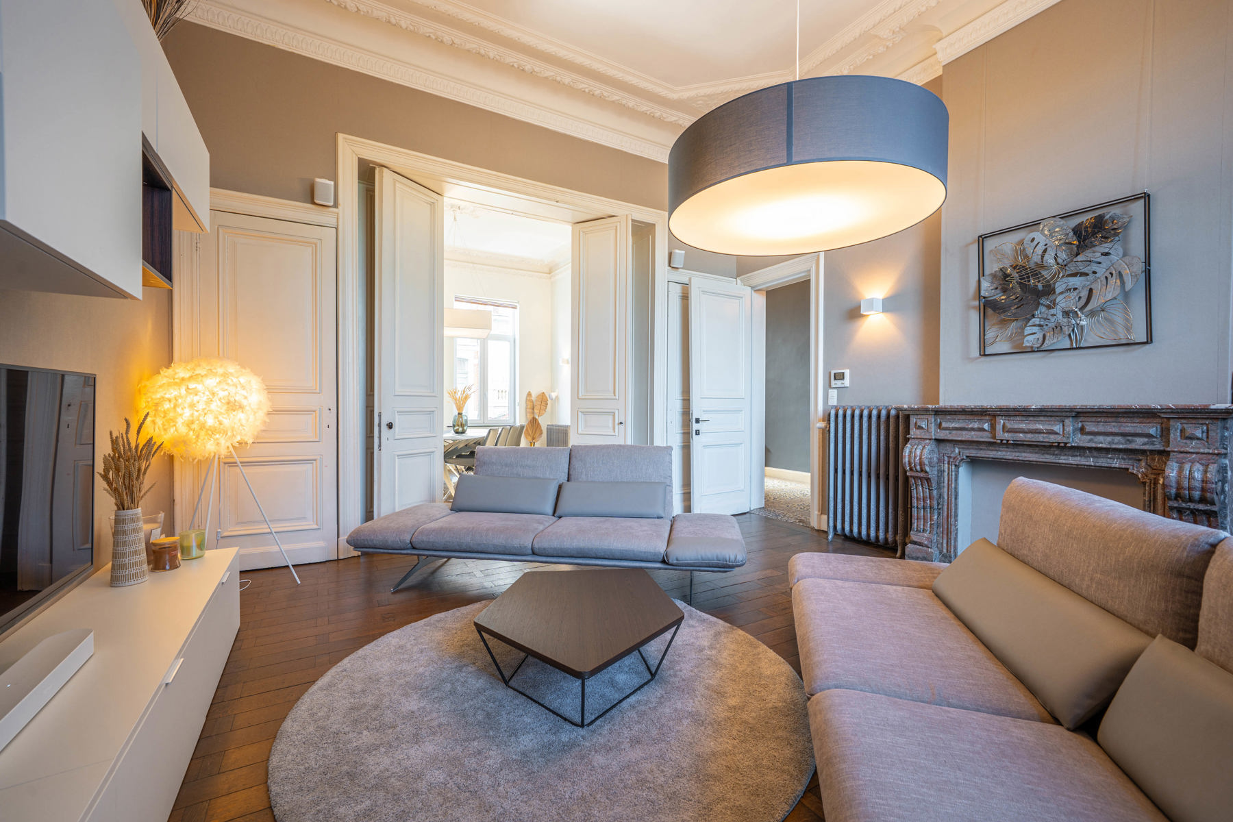 Ce bien se compose au rez-de-chaussée d'un spacieux hall d'entrée, d'un séjour en enfilade avec une salle à manger et d'une lumineuse cuisine donnant accès à une terrasse panoramique et au jardin. Le premier étage se compose d'un palier en demi niveau desservant une buanderie, deux spacieuses chambres dont une imposante suite parentale avec dressing et salle de bains. Le deuxième étage se compose quant à lui d'un hall donnant accès à deux chambres et d'une salle de bains. Le troisième étage se compose d'une kitchenette, de deux chambres et d'une salle de bains. De spacieuse caves, une terrasse panoramique de 41m2 et un jardin complètent l'ensemble. Possibilité d'acheter un garage dans la rue moyennant supplément.