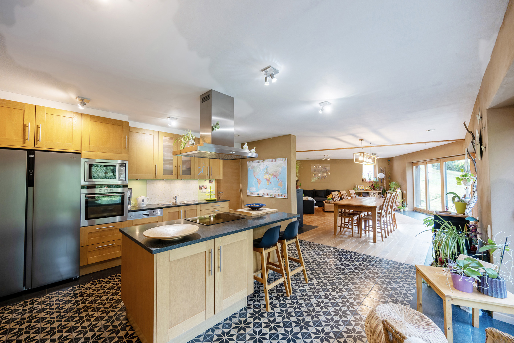 Le rez-de-chaussée vous accueille par un élégant sas d’entrée doté d’un vestiaire et de rangements pratiques. Un escalier mène ensuite à un vaste séjour lumineux de près de 55 m², où se mêlent harmonieusement le salon, la salle à manger, une cuisine moderne et fonctionnelle et complétée par une buanderie attenante. Cet espace de vie ouvert bénéficie de larges baies vitrées offrant un accès direct à la terrasse. Un bureau polyvalent (idéal pour une profession libérale ou télétravail) ainsi qu’un W.C. indépendant viennent parfaire ce niveau. L’étage se compose de quatre chambres dont une spacieuse chambre parentale, de deux salles de douches et d'un W.C indépendant. Une annexe à rénover, attenante à la propriété, permet de disposer d’un espace complémentaire selon vos besoins. À l’extérieur, la propriété dispose d’une allée privative, d’un carport, d'un zome en bois indépendant, offrant un petit espace habitable séparé, d’un espace boisé ainsi que d’un spacieux jardin sans vis-à-vis. Cette superbe villa passive en ossature bois vous séduira par son design contemporain, ses finitions soignées et son parfait équilibre entre confort et durabilité.