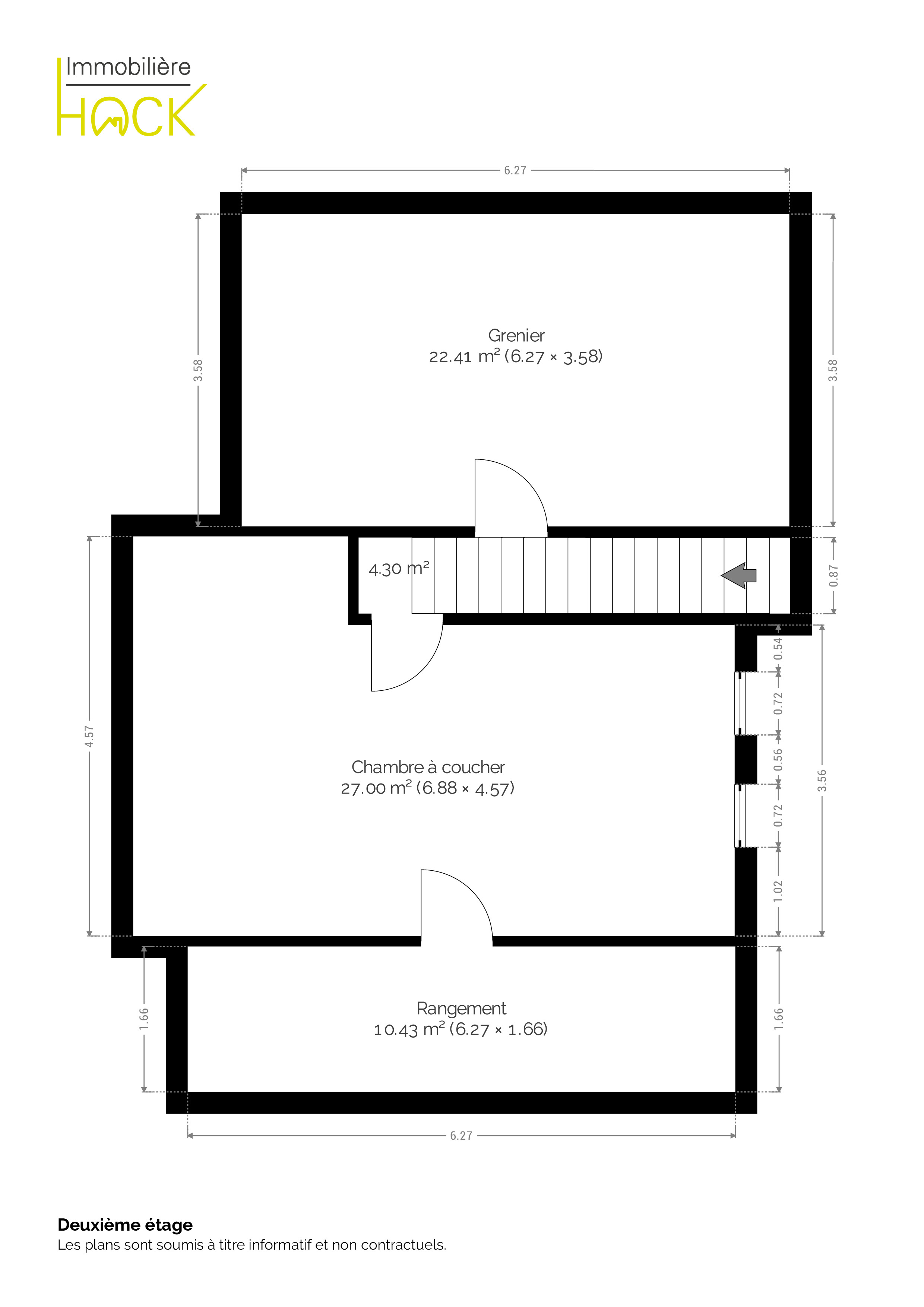 Au premier étage d’un immeuble sans ascenseur et accessible via son entrée indépendante, ce bien se compose d’un hall d’entrée, d’un lumineux séjour ouvert sur une cuisine équipée, d'un WC, de deux chambres dont une avec un espace de rangement ainsi que d'une salle de bains. Au deuxième étage, un hall de nuit dessert une chambre avec un espace de rangement et un grenier. Un emplacement de parking ainsi qu'un garage complètent l’ensemble.