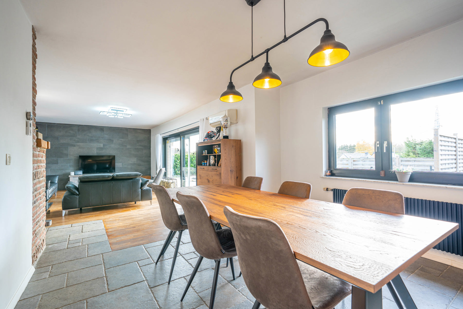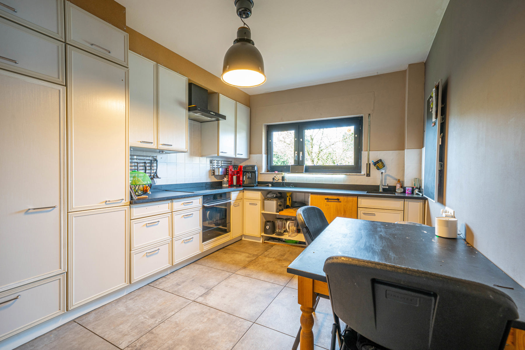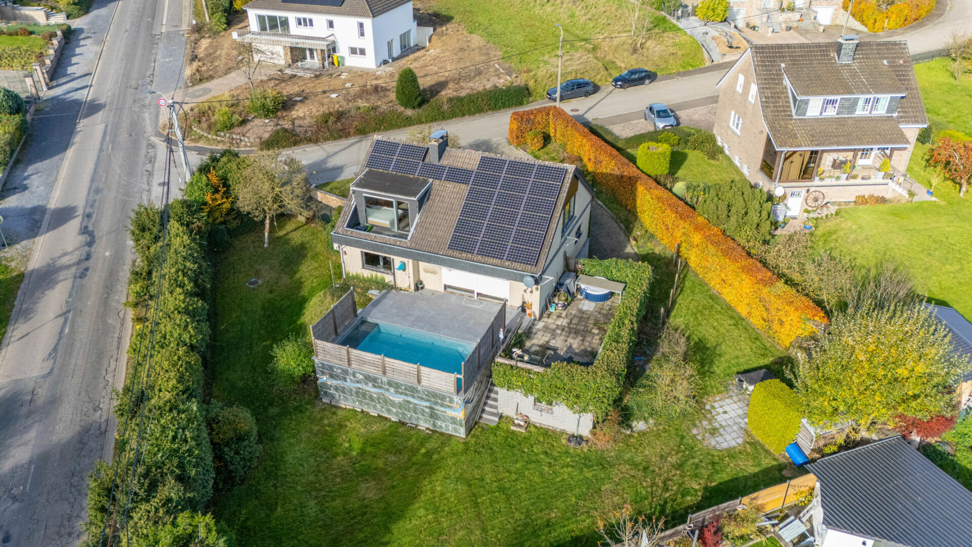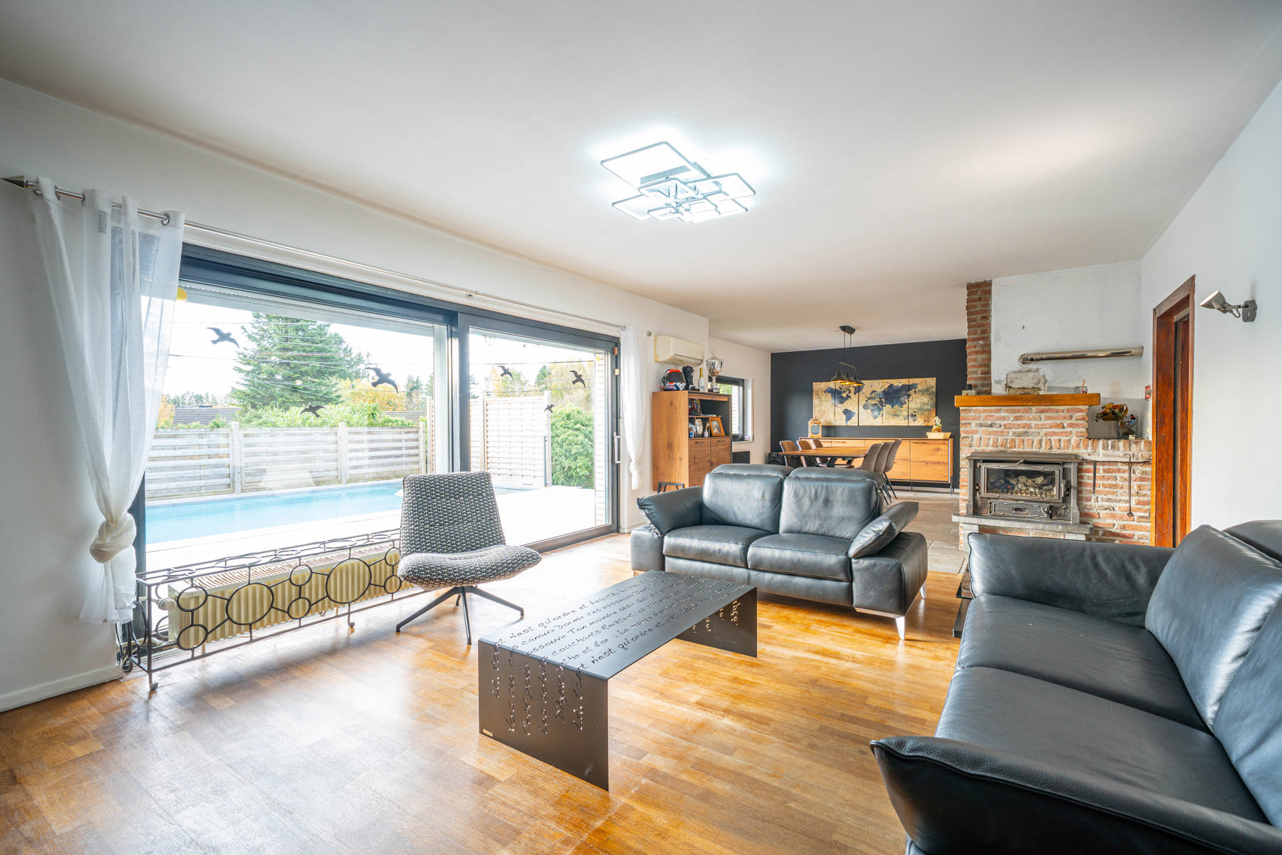 DV PVC - Electricité non conforme - Chauffage central mazout - Pompe à chaleur pour séjour (chaud/froid) - Poêle à bois - 24 panneaux photovoltaïques.