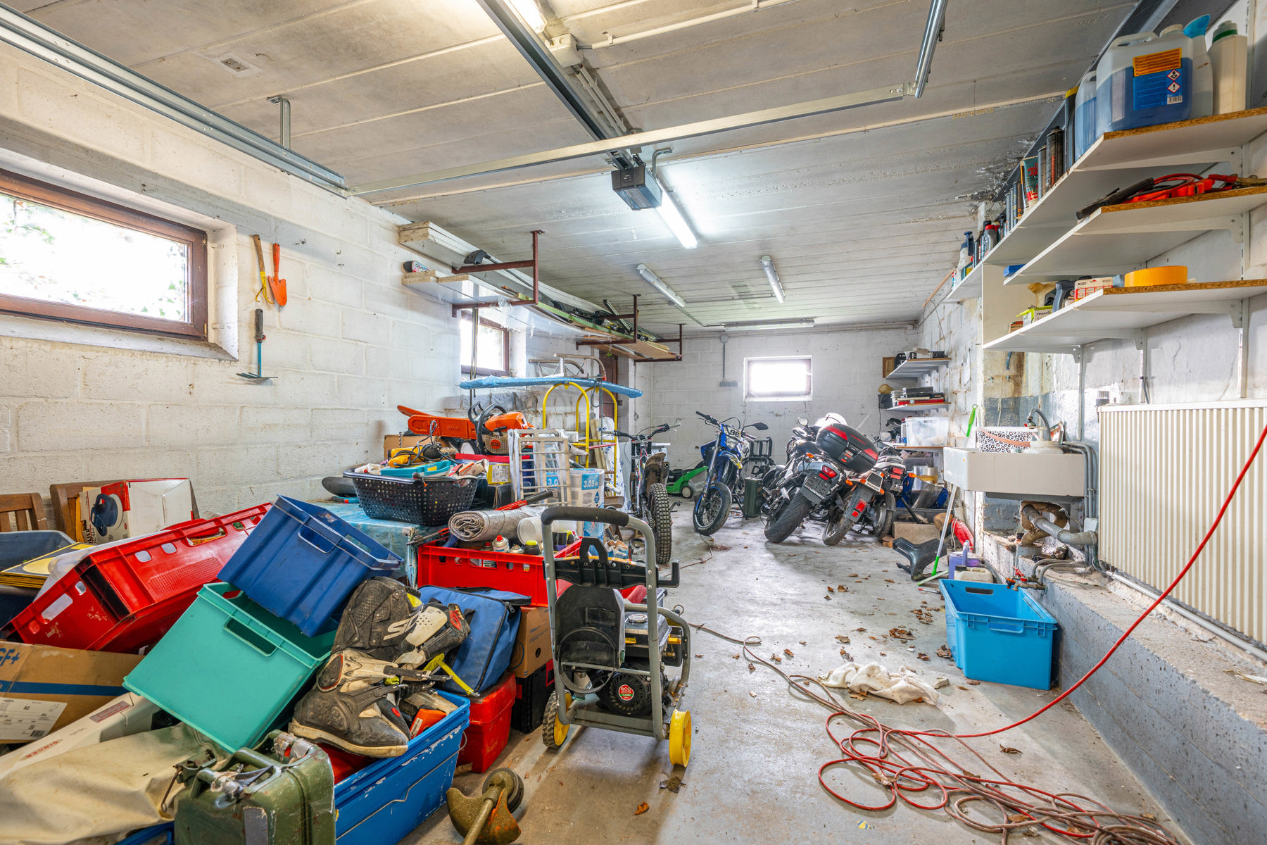 Située au début d'une rue à voie sans issue, maison 4 chambres (possibilité 5) avec garages, caves, terrasse, jardin et piscine.