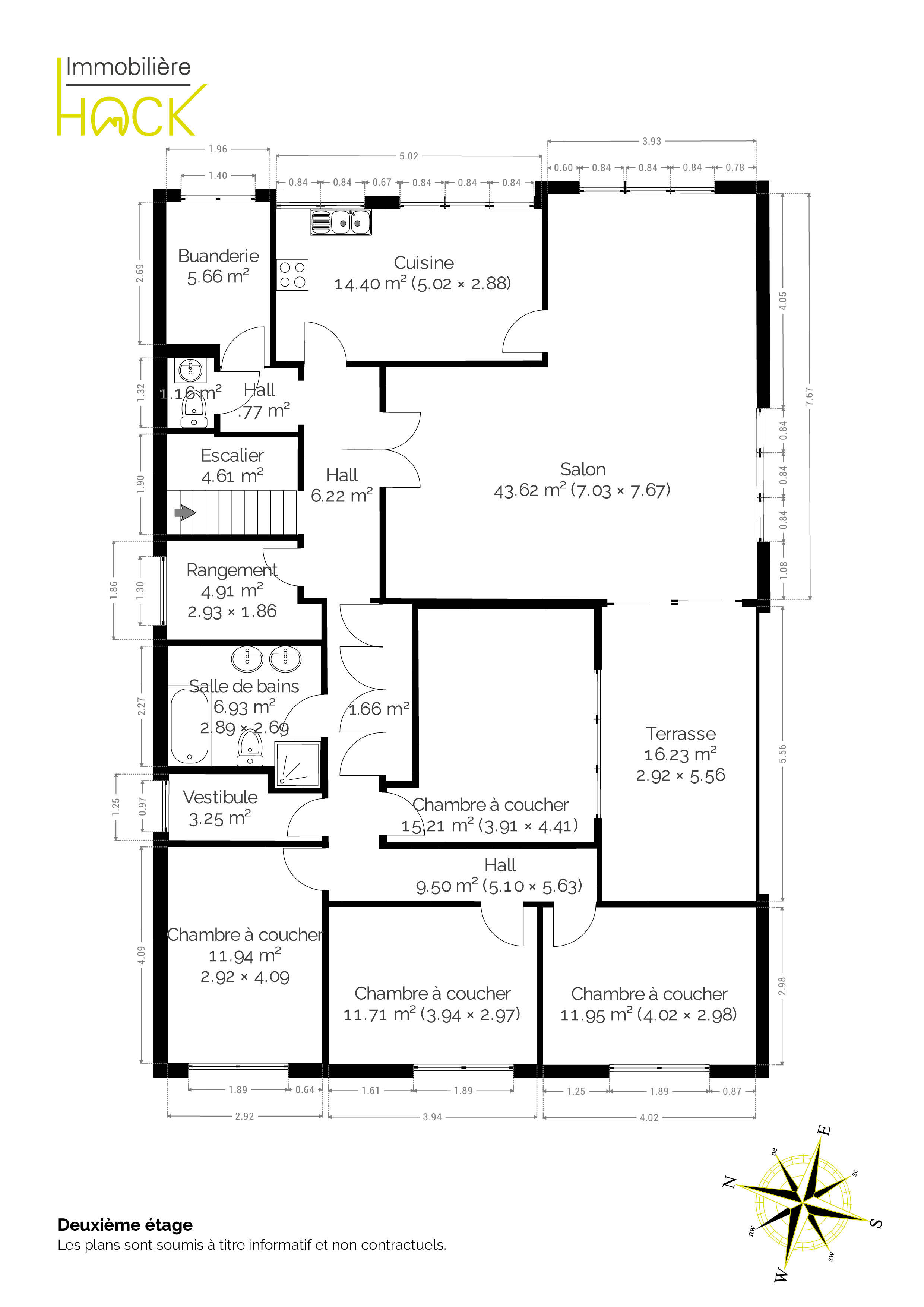 Cet appartement situé au 2 ème étage d’une résidence sans ascenseur se compose d’un séjour, d'une cuisine, d'un WC, d'une buanderie, d’une salle de bains (douche et bain), de quatre chambres ainsi que de deux pièces de rangement. Une terrasse et un emplacement de parking complètent l'ensemble.