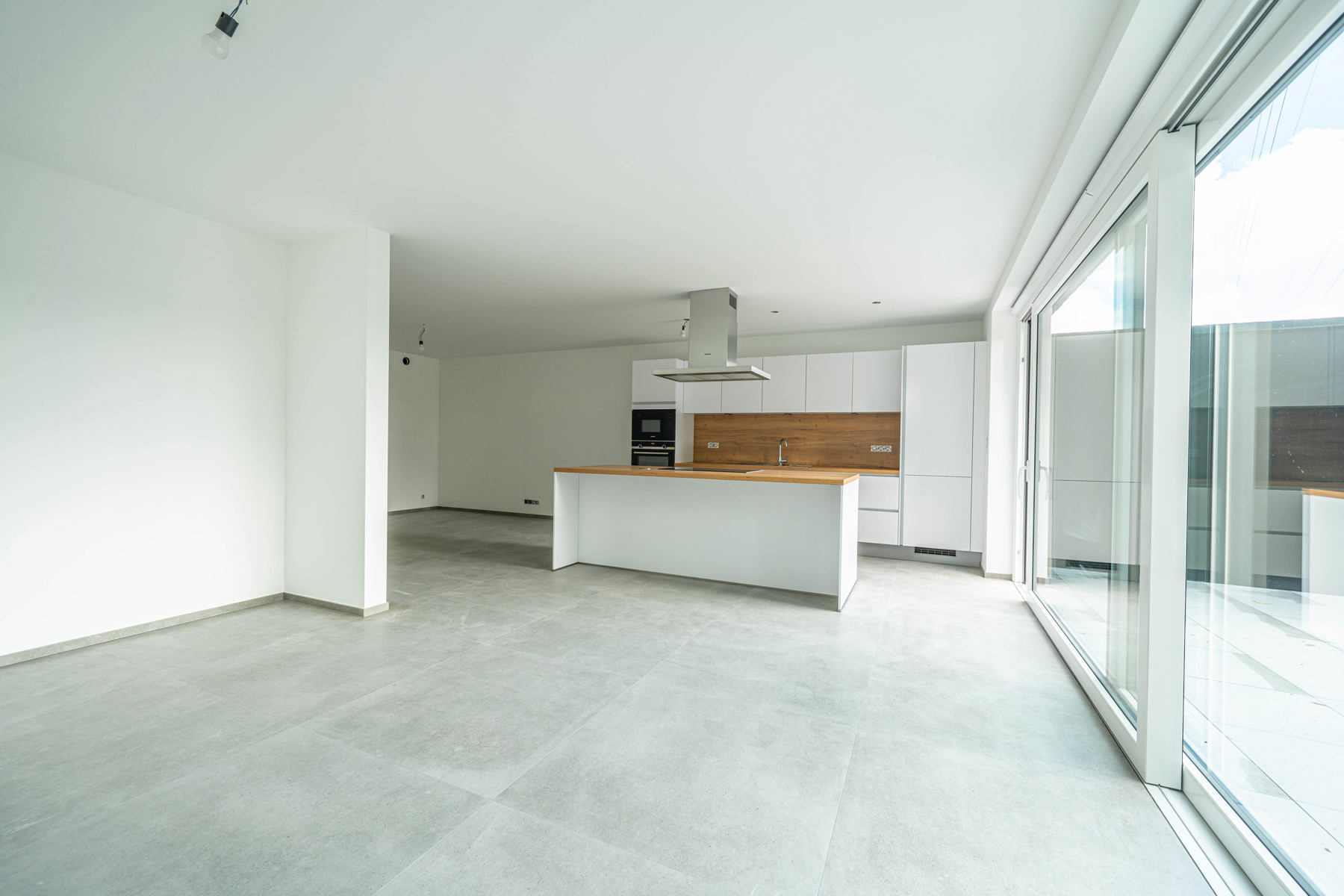 Idéalement situé le long de la Chaussée Charlemagne à proximité de toutes commodités, superbe appartement neuf ZERO ENERGIE 3 chambres, terrasse, cave et deux emplacements de parking (int/ext.)