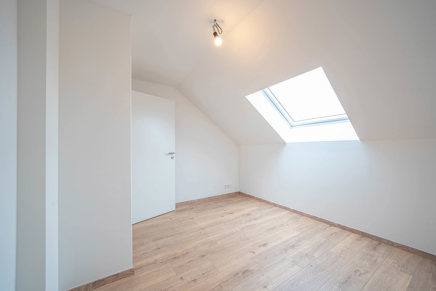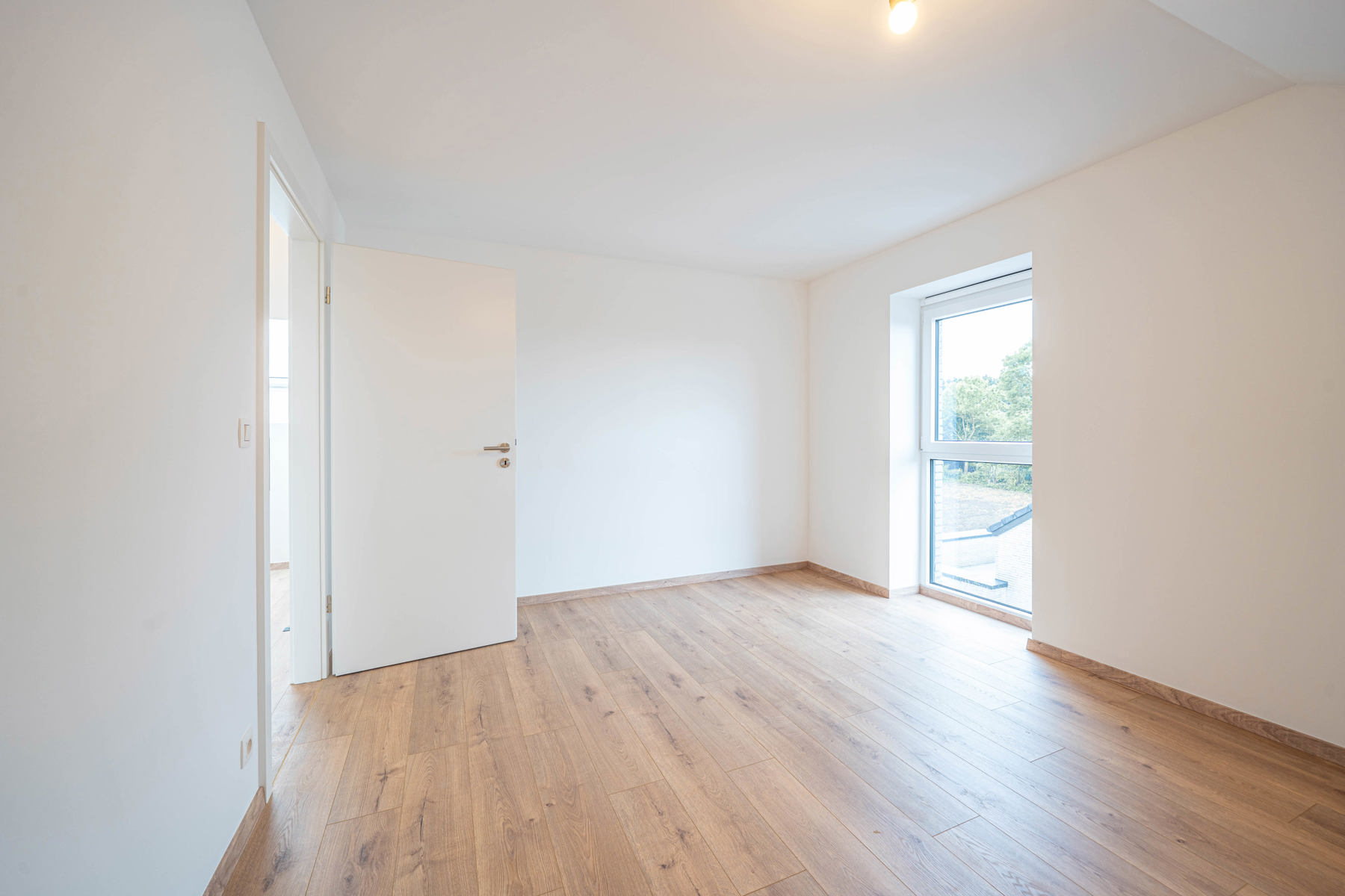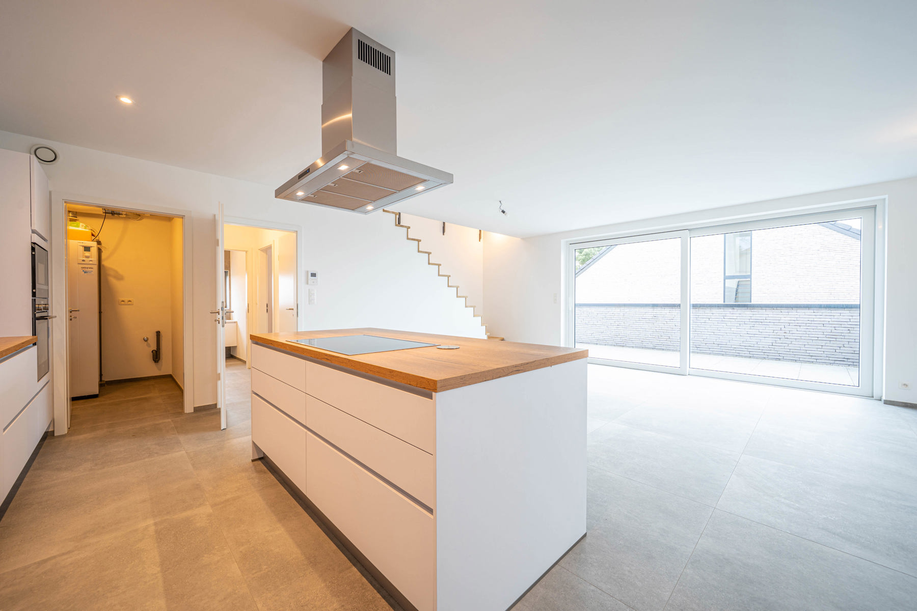 Idéalement situé le long de la Chaussée Charlemagne à proximité de toutes commodités, superbe duplex neuf ZERO ENERGIE 3 chambres, 2 SDB, terrasse, cave et deux emplacements de parking (int/ext.)