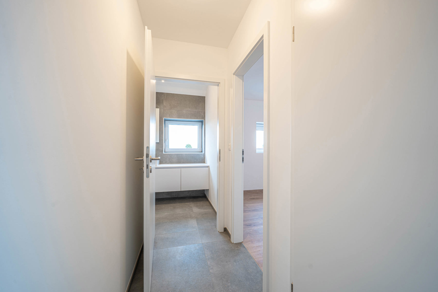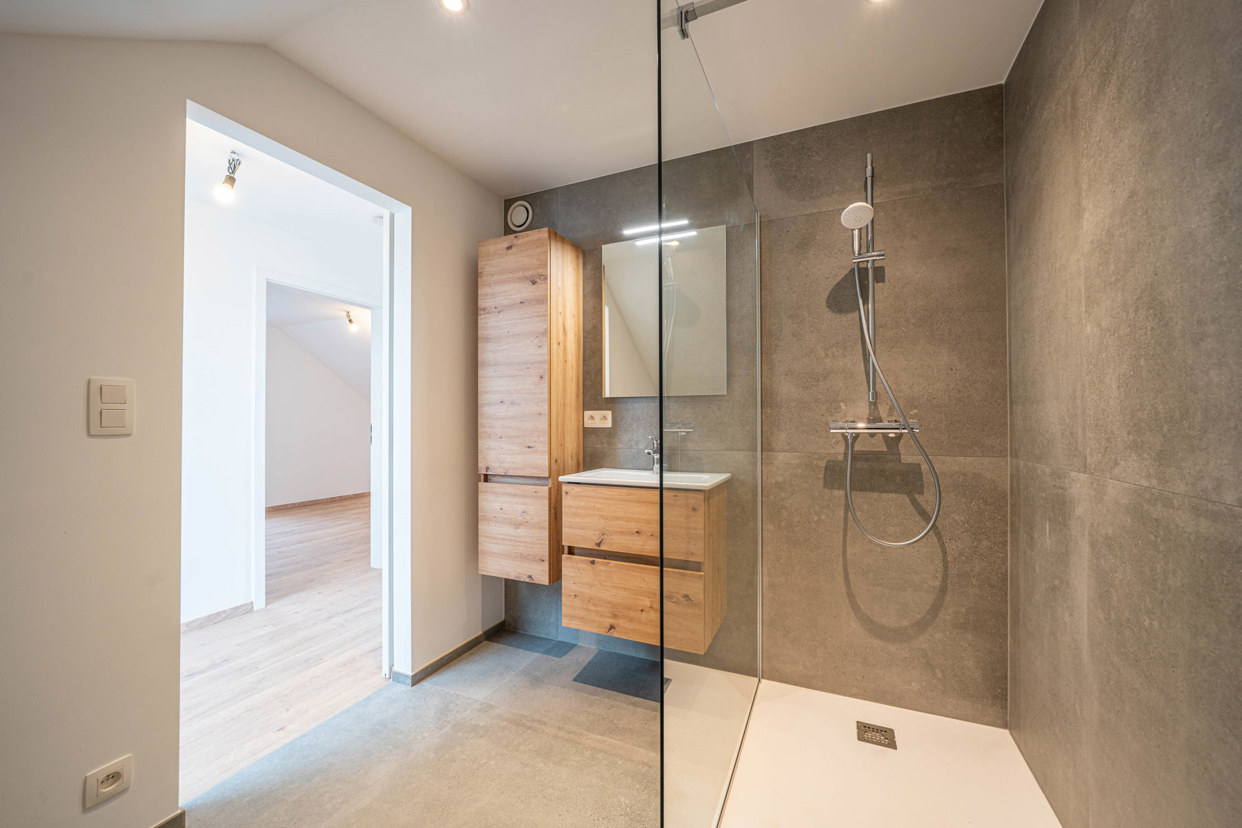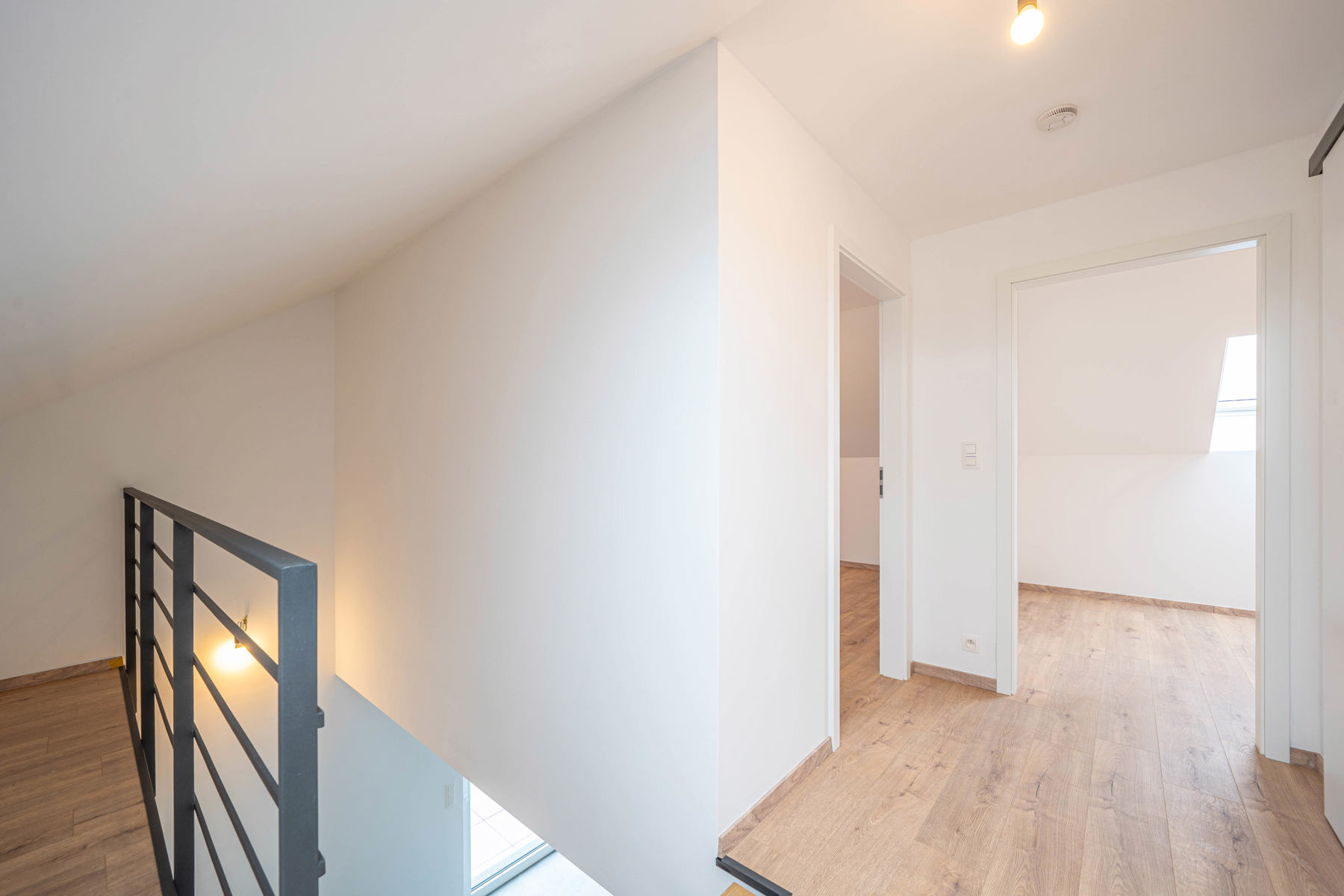 Idéalement situé le long de la Chaussée Charlemagne à proximité de toutes commodités, superbe duplex neuf ZERO ENERGIE 3 chambres, 2 SDB, terrasse, cave et deux emplacements de parking (int/ext.)