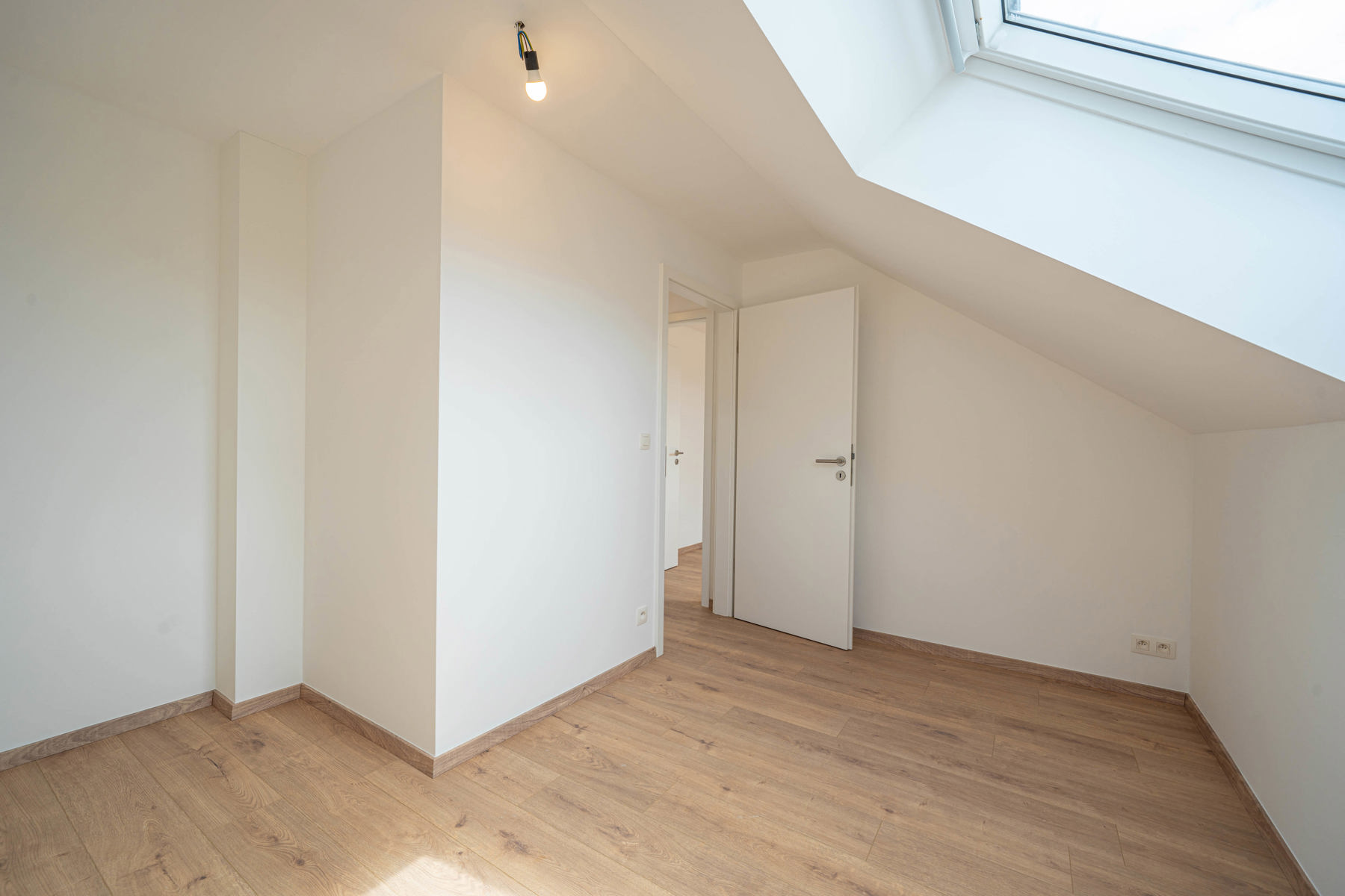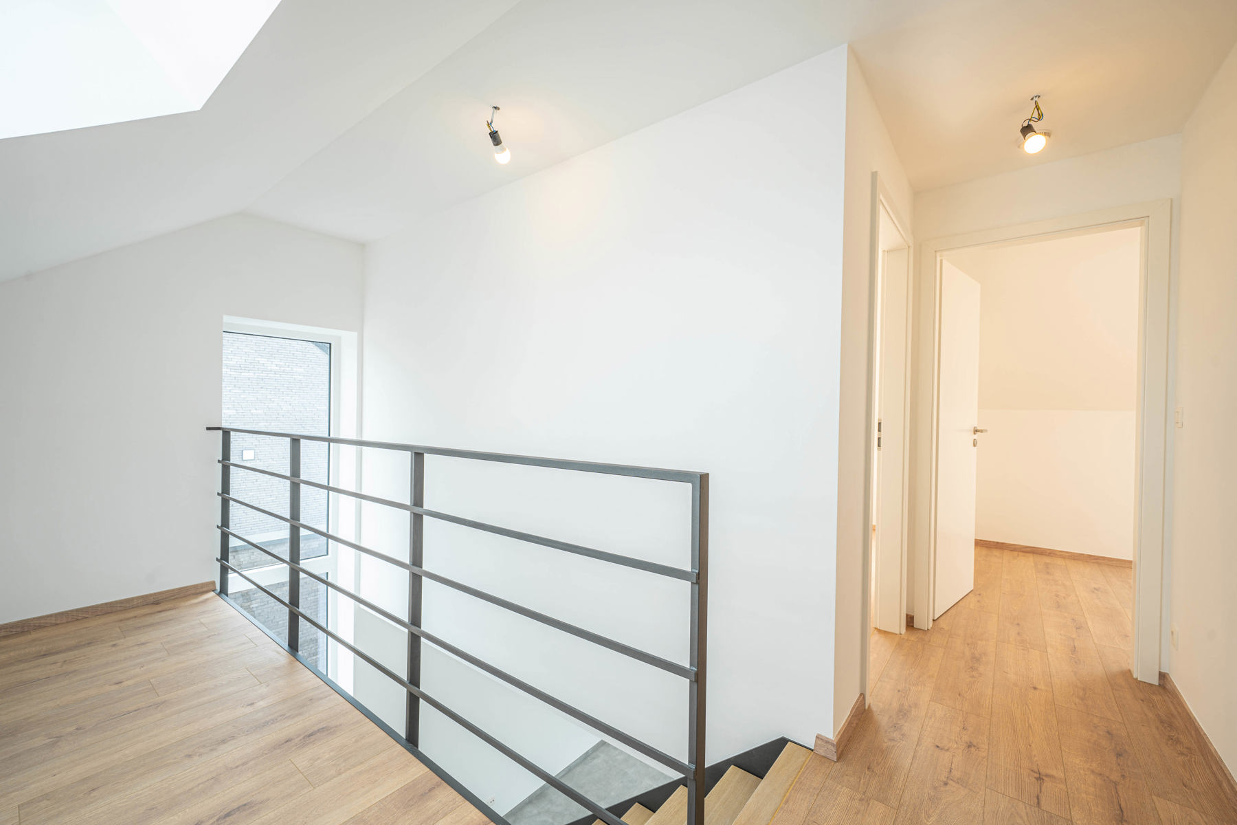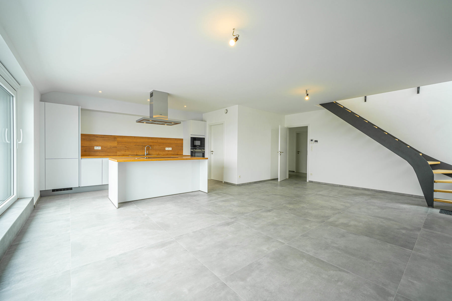 Idéalement situé le long de la Chaussée Charlemagne à proximité de toutes commodités, superbe duplex neuf ZERO ENERGIE 3 chambres, 2 SDB, terrasse, cave et deux emplacements de parking (int/ext.)