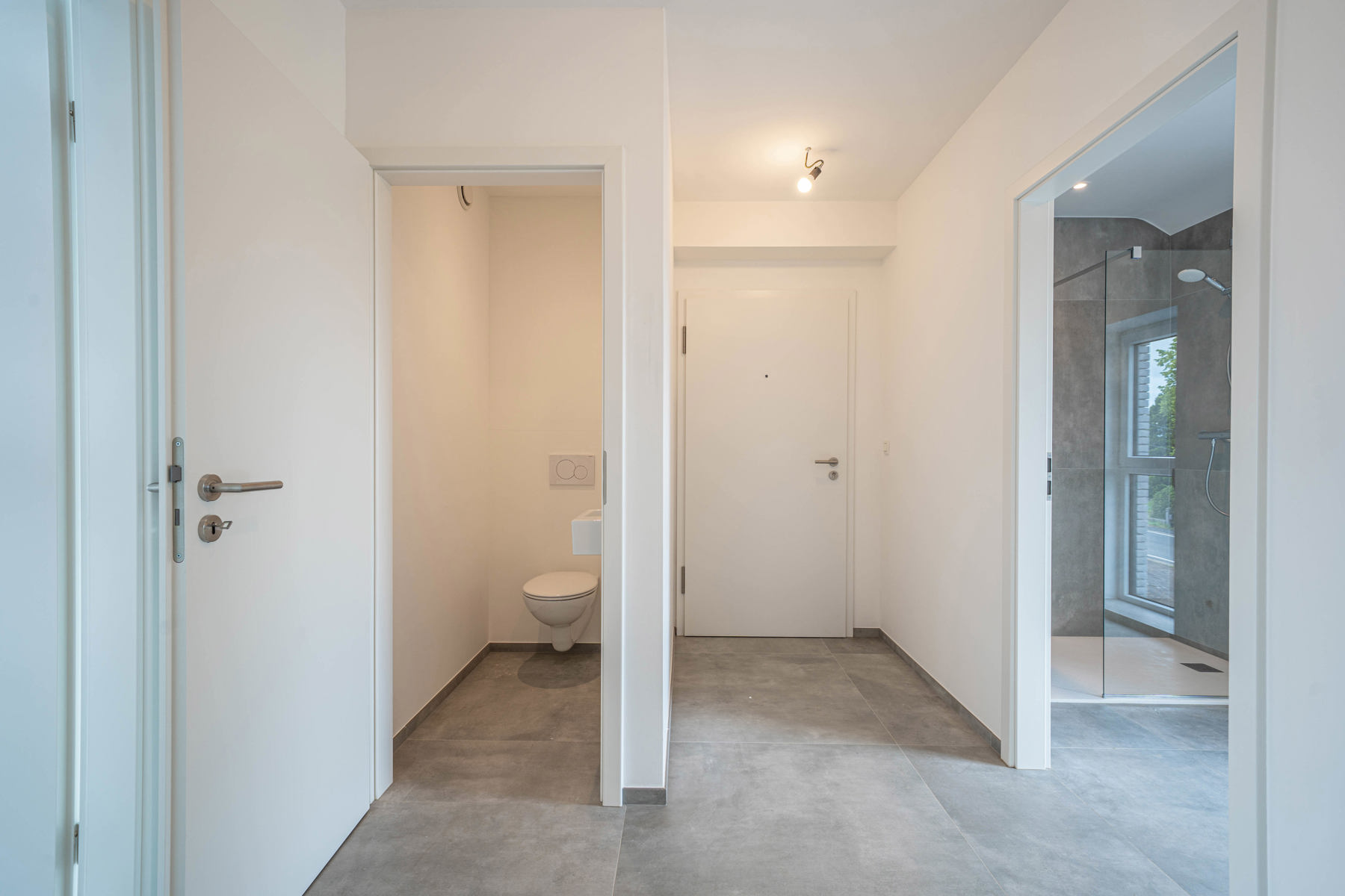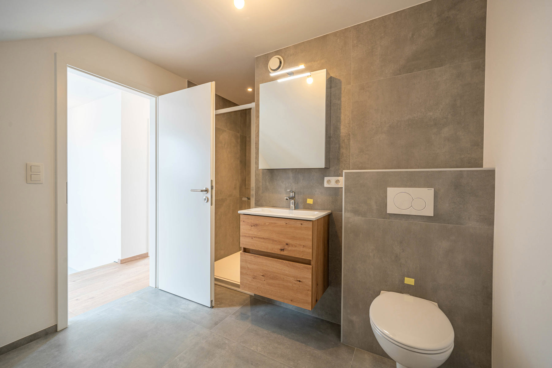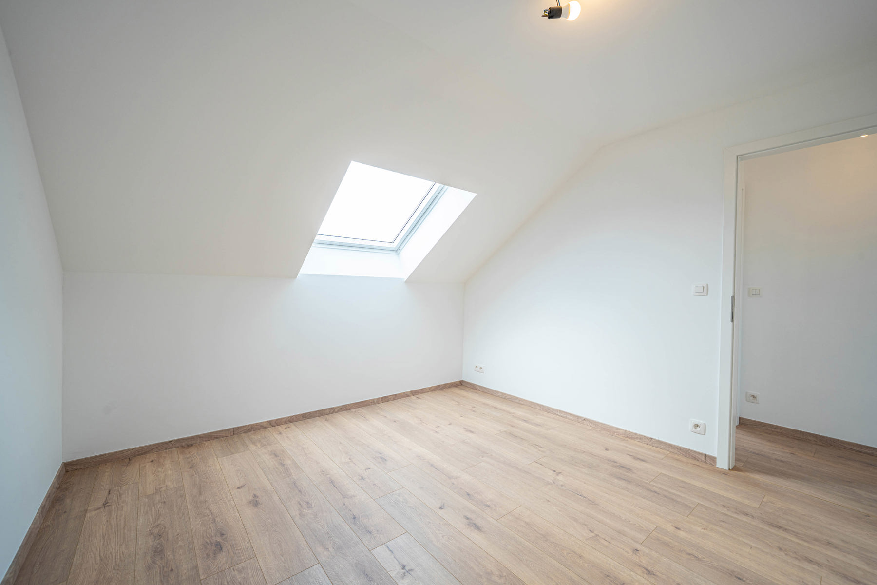 Idéalement situé le long de la Chaussée Charlemagne à proximité de toutes commodités, superbe duplex neuf ZERO ENERGIE 3 chambres, 2 SDB, terrasse, cave et deux emplacements de parking (int/ext.)