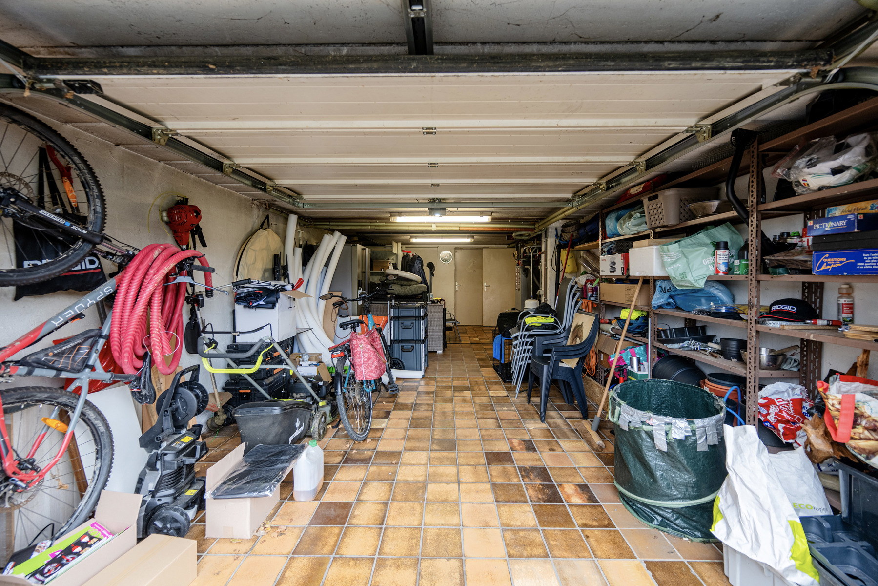 Ce bien se compose, au rez-de-chaussée, d'un hall d'entrée avec WC, d'un lumineux séjour donnant accès à la terrasse, d'une cuisine équipée, d'une chambre ainsi que d'une buanderie. À l'étage, le hall de nuit dessert quatre chambres et une salle de bains. Deux garages, des caves ainsi qu'un grand jardin (orienté ouest) complètent l'ensemble.