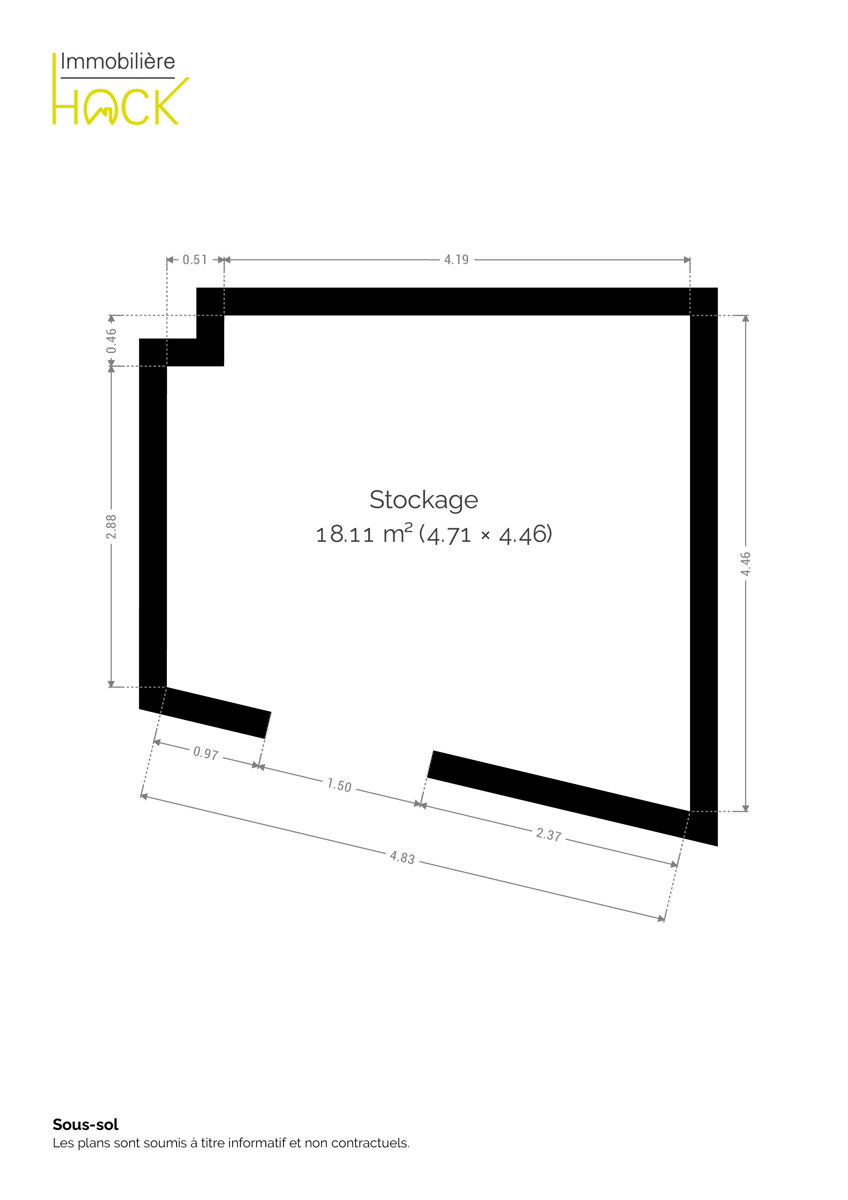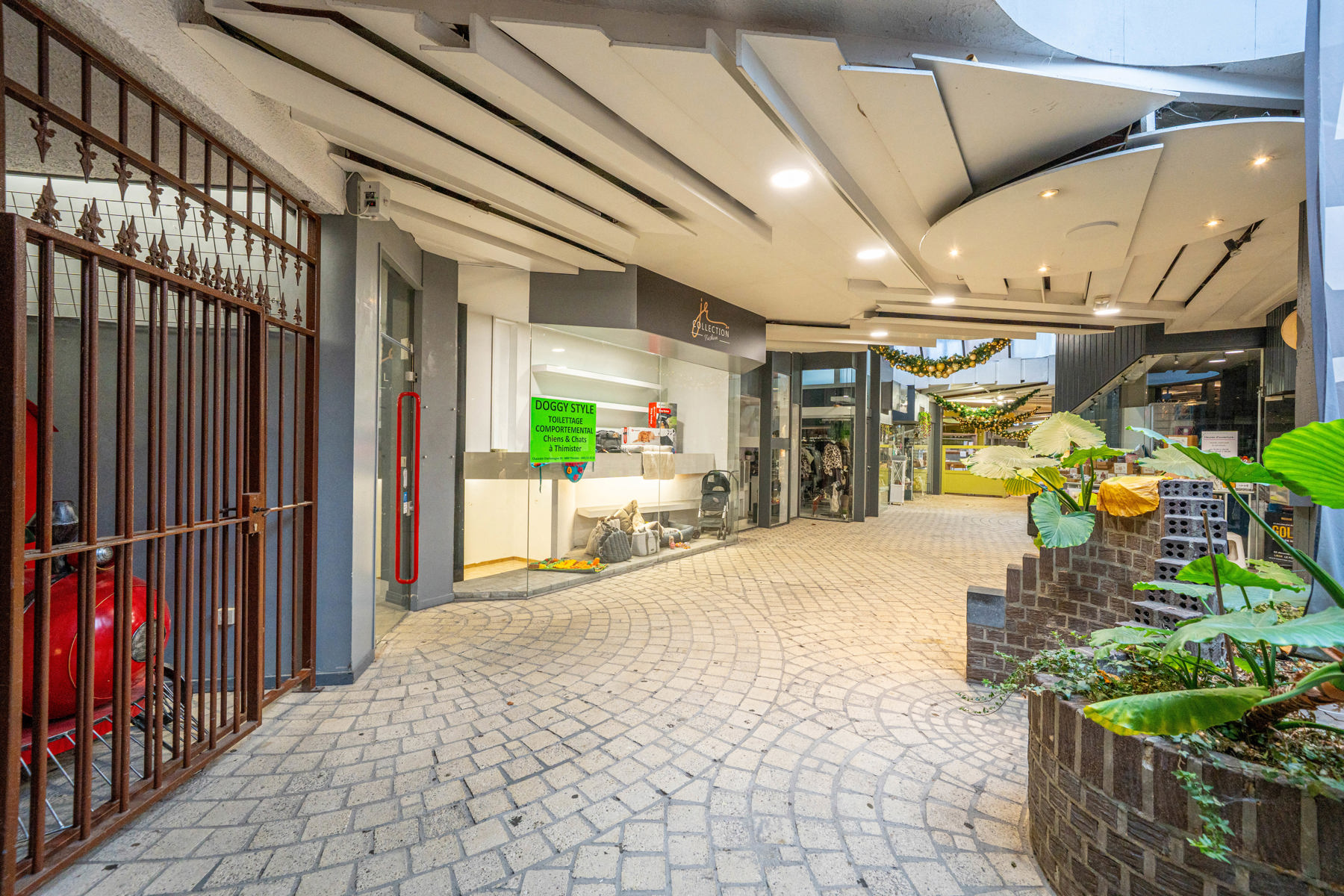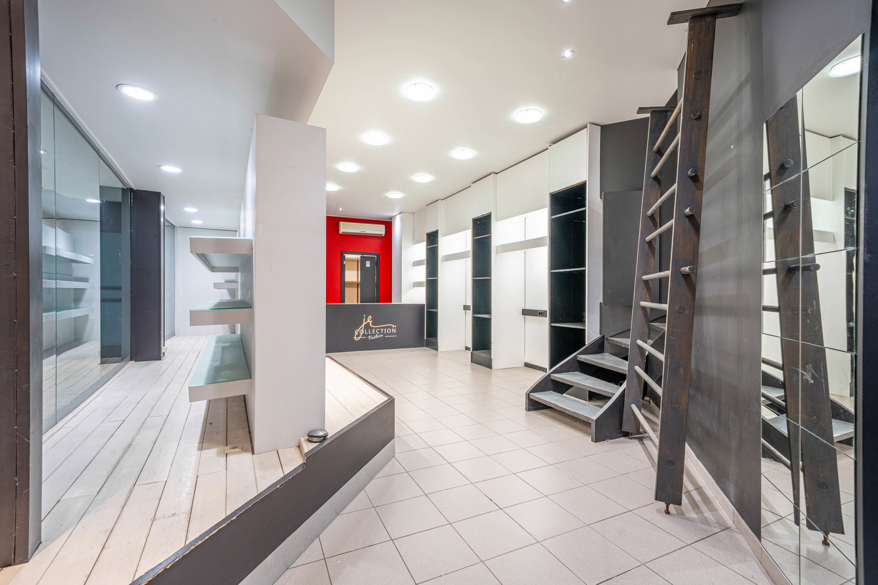 Cette surface comprend un espace commercial de 41,33 m², une surface surélevée de 12,22 m², un espace de stockage en demi sous-sol de 18,11m² ainsi qu'une pièce arrière dédiée au rangement. Sa large vitrine lui offre une excellente visibilité depuis les différentes entrées de la galerie.