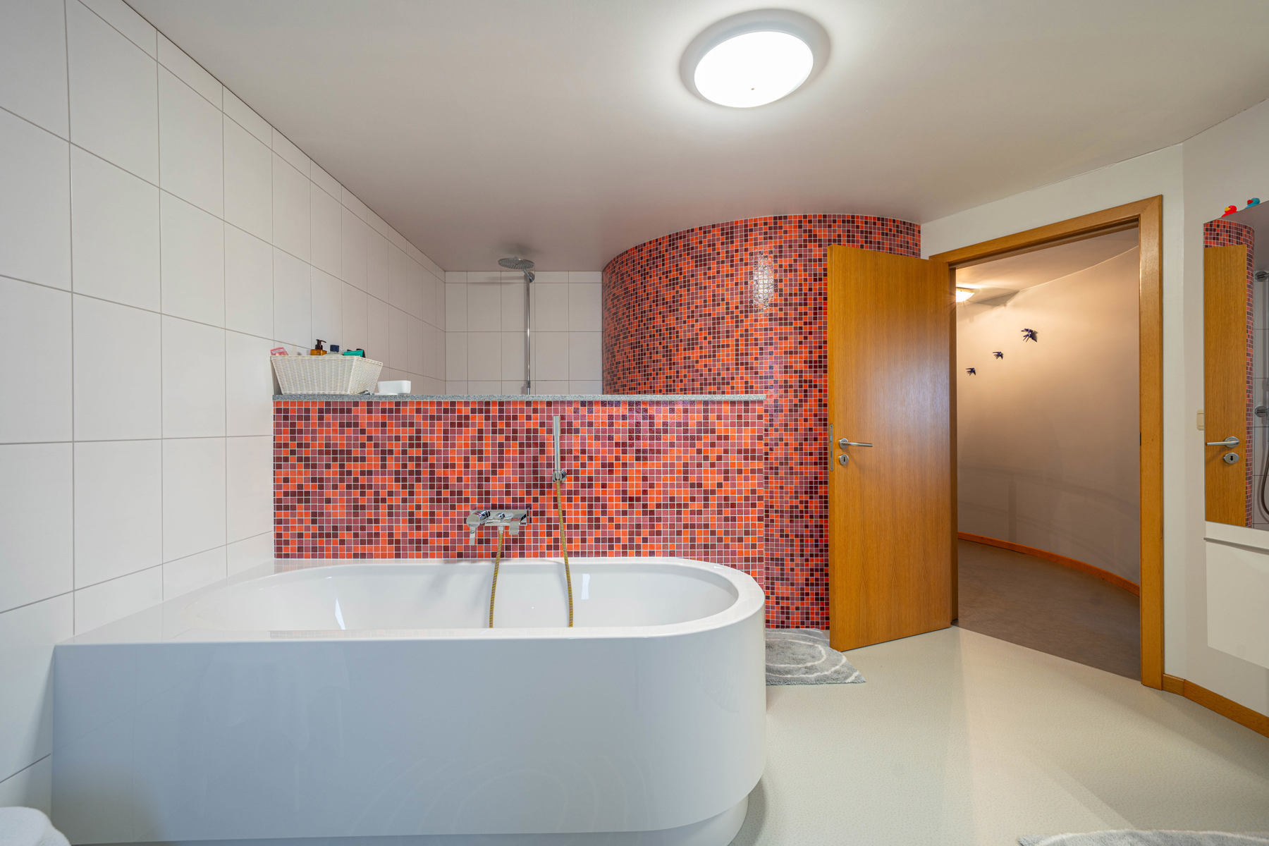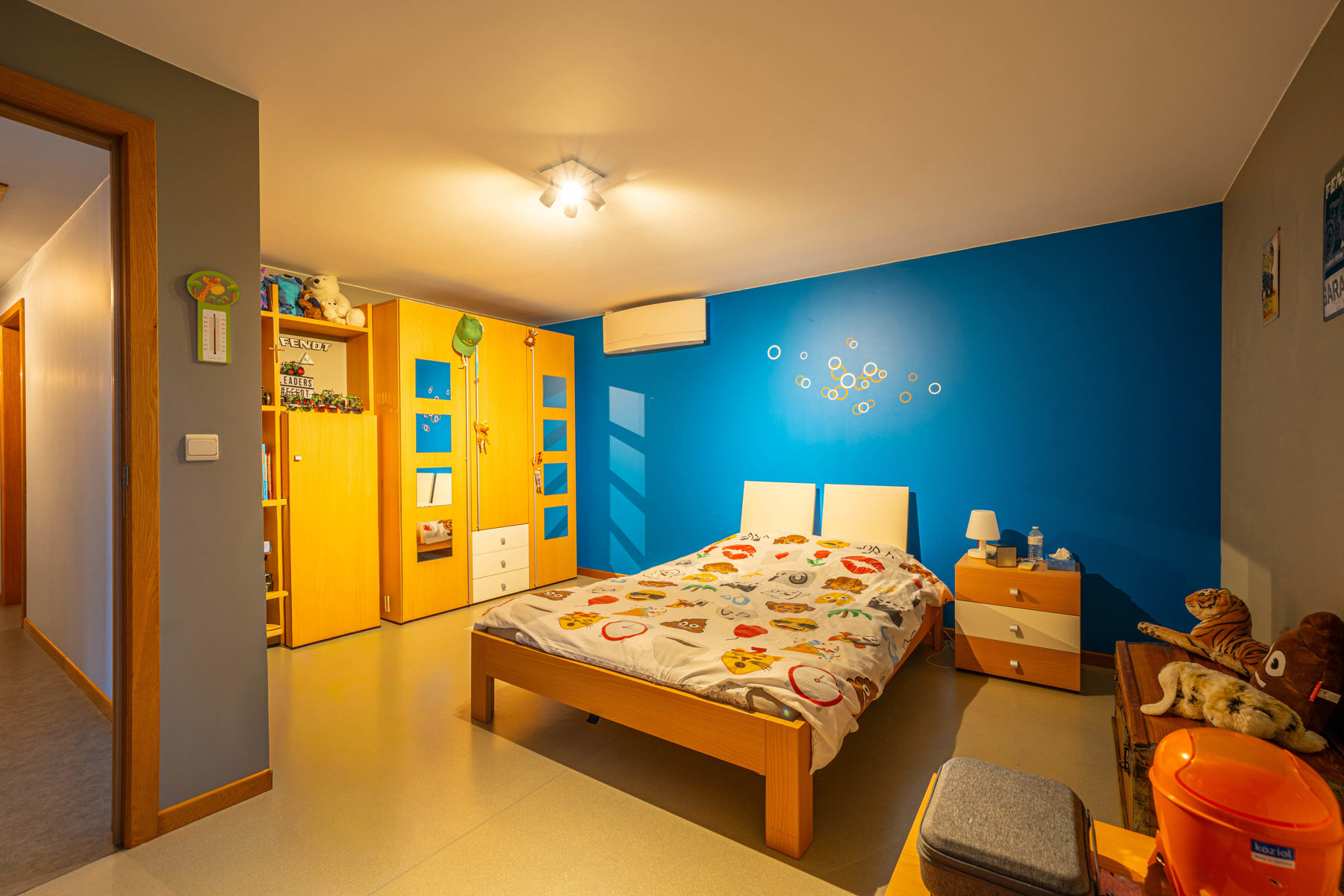 Le rez-de-chaussée se compose d’un hall d’entrée avec vestiaire et WC, d’un séjour lumineux ouvert sur une cuisine équipée offrant un accès direct à la terrasse, ainsi que d’une buanderie. À l’étage, le hall de nuit dessert cinq chambres, dont une avec dressing, une salle de bains (douche et bain), ainsi qu’une pièce de rangement.