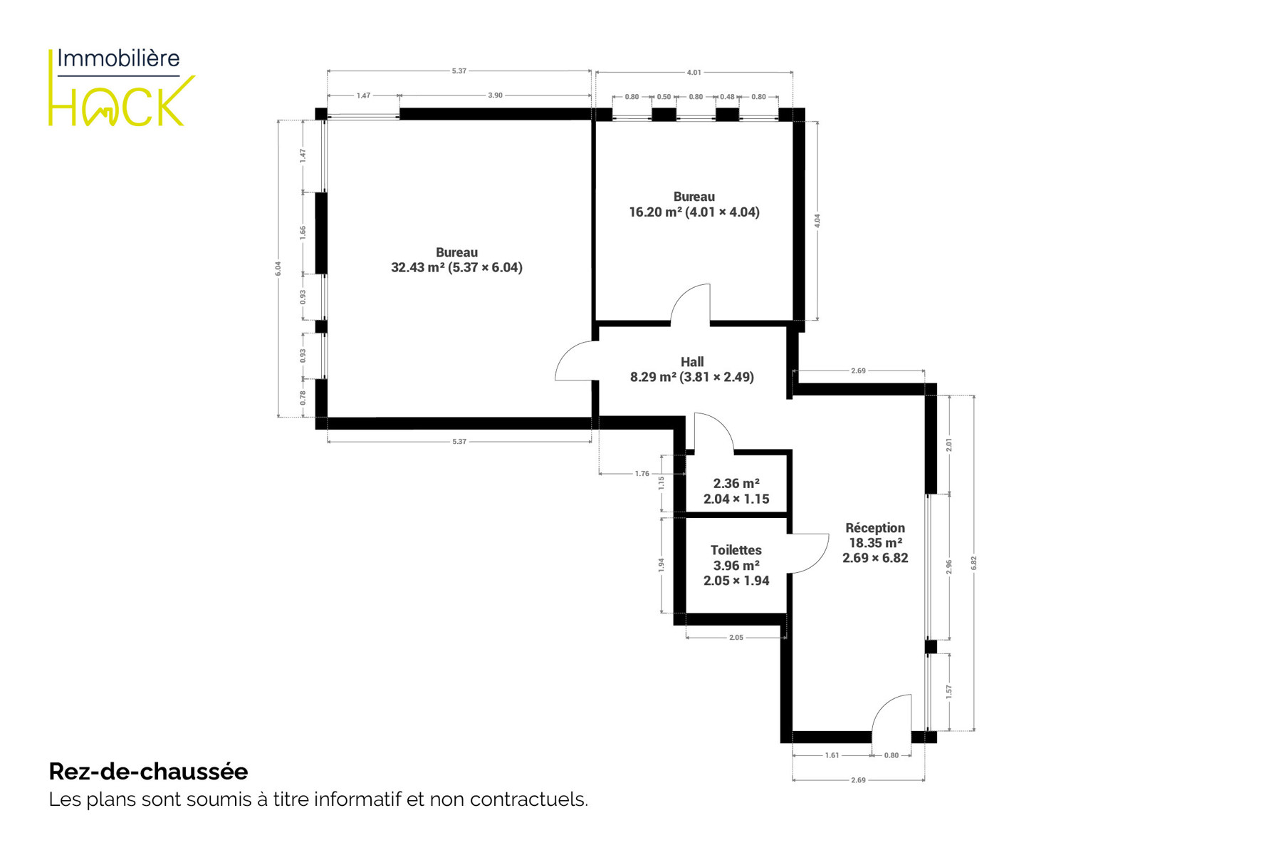 Cette surface commerciale est proposée en gros œuvre fermé, offrant à l’acquéreur la possibilité de l’aménager entièrement selon ses besoins et son projet. Elle se compose d’un hall avec vitrine, d’un espace polyvalent réparti en deux pièces de 48 m², d’un débarras ainsi que d’un espace prévu pour les sanitaires.